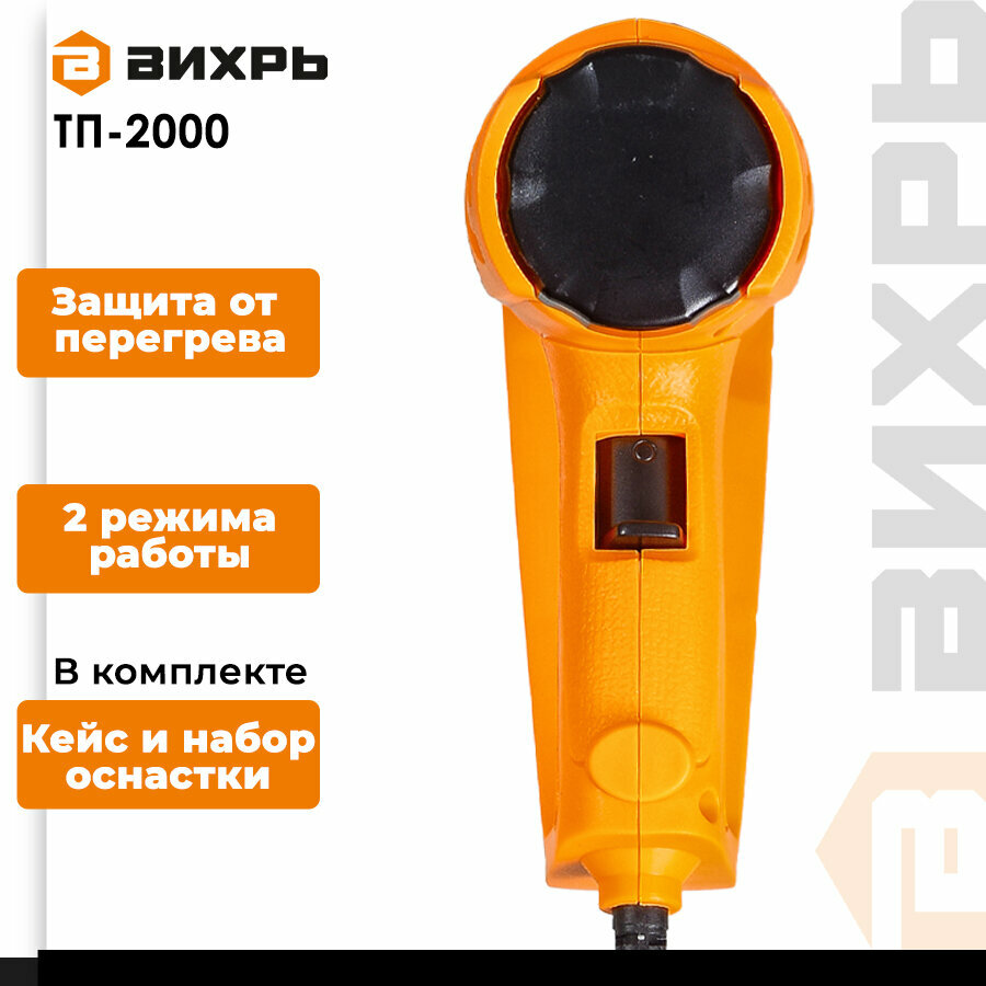 Строительный фен ВИХРЬ ТП-2000, 2000 Вт оранжевый