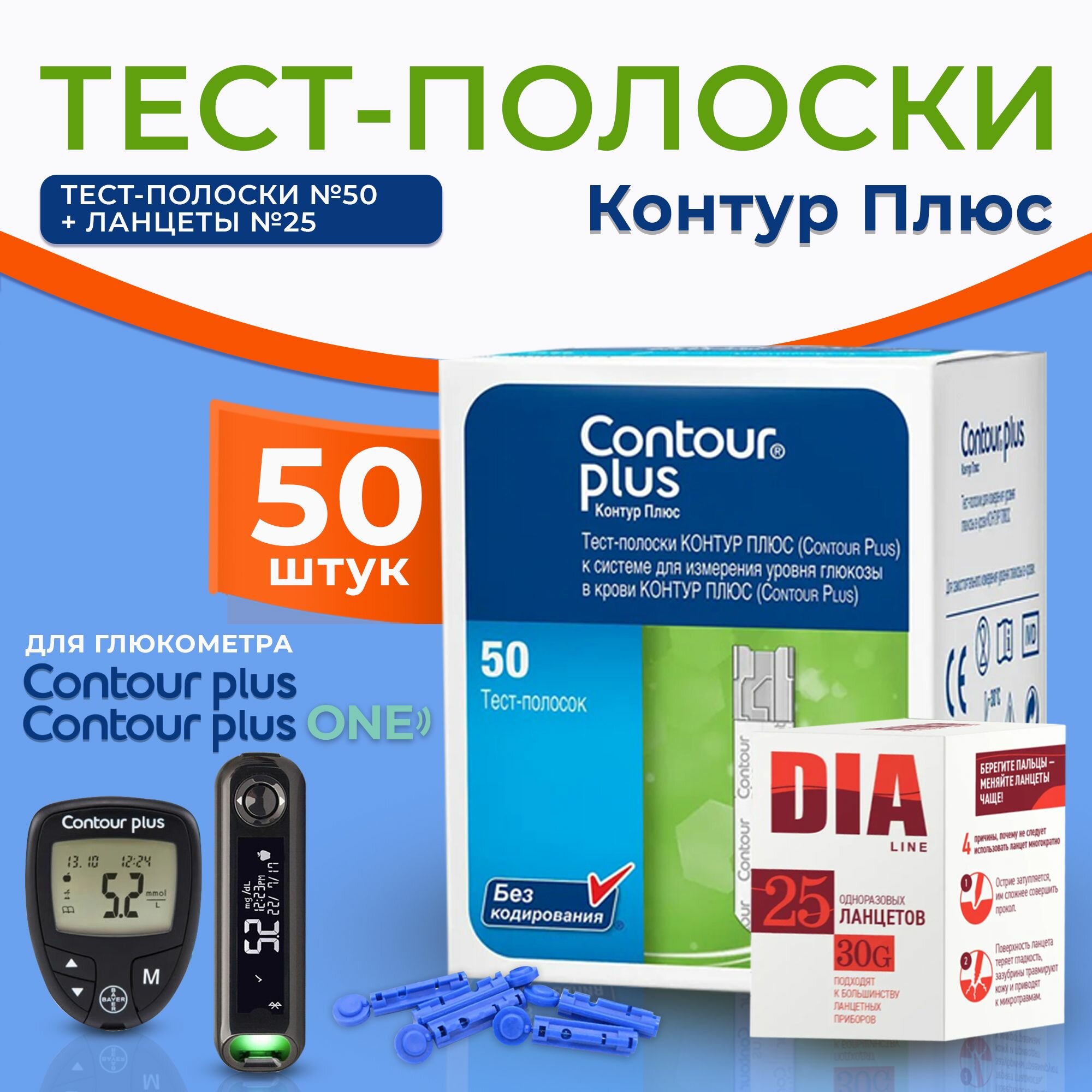 Тест-полоски Контур Плюс (Contour Plus) №50 + ланцеты 25 шт информация: