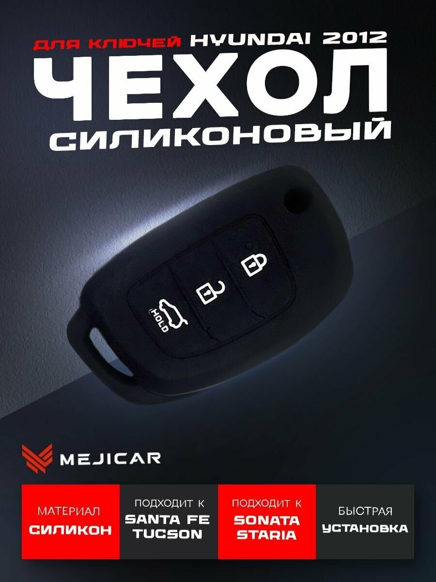 Отзывы на Чехол силиконовый MejiCar для выкидного ключа Hyundai 2012 - н.в. Black 3 Кнопки