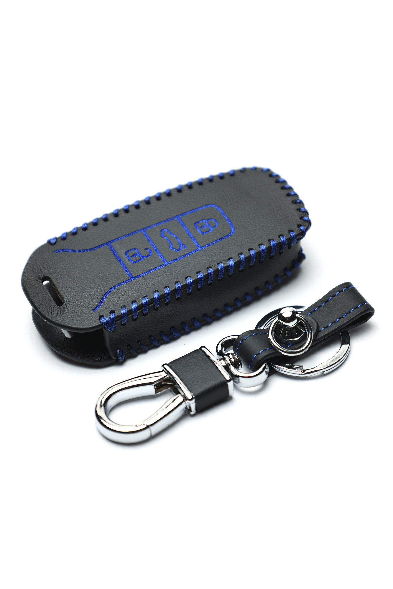 Чехол на ключ VW TOUAREG 2019 Черный нить Синяя информация: