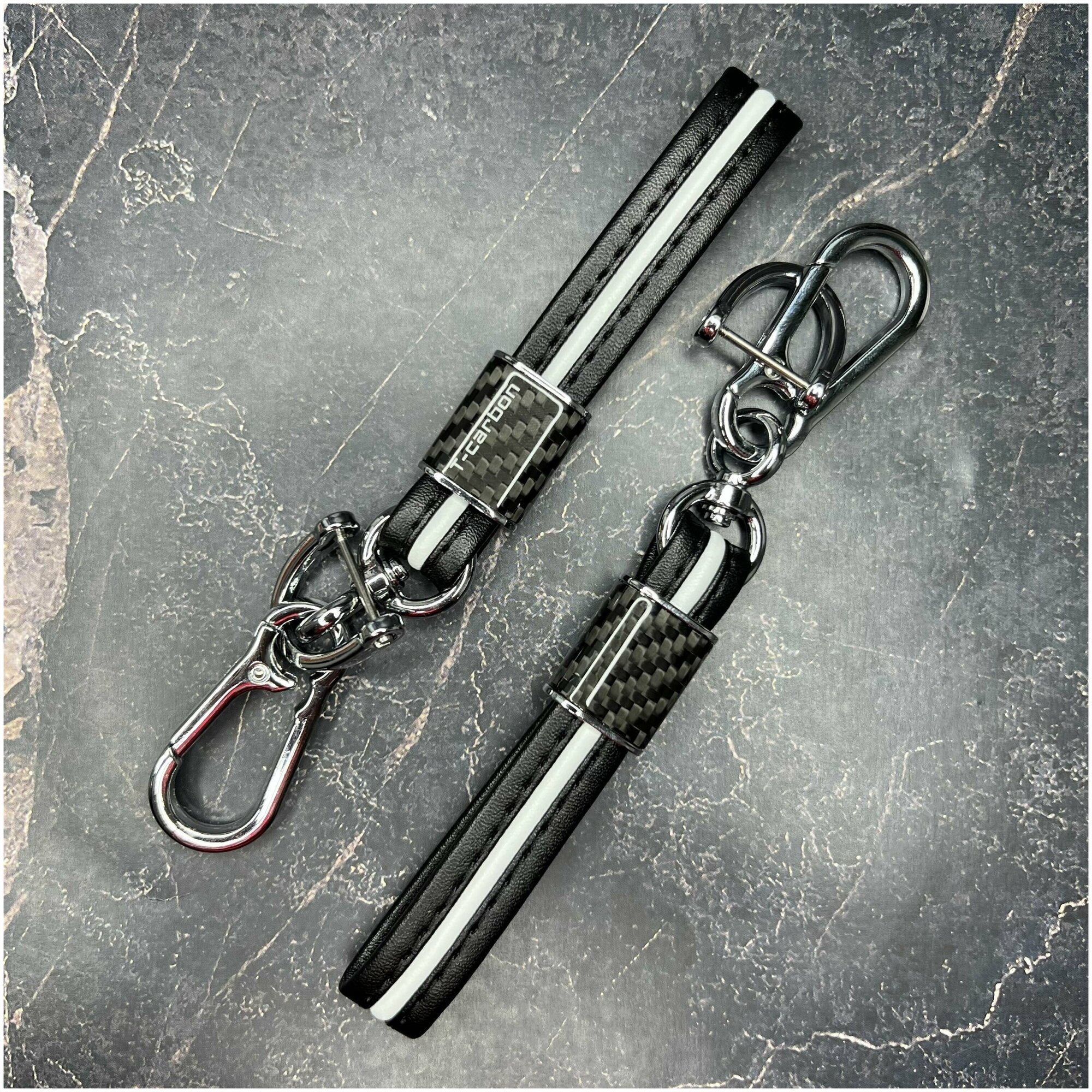 Брелок для автомобильных ключей / Брелок для ключей из кожи и карбона черный-белый информация: