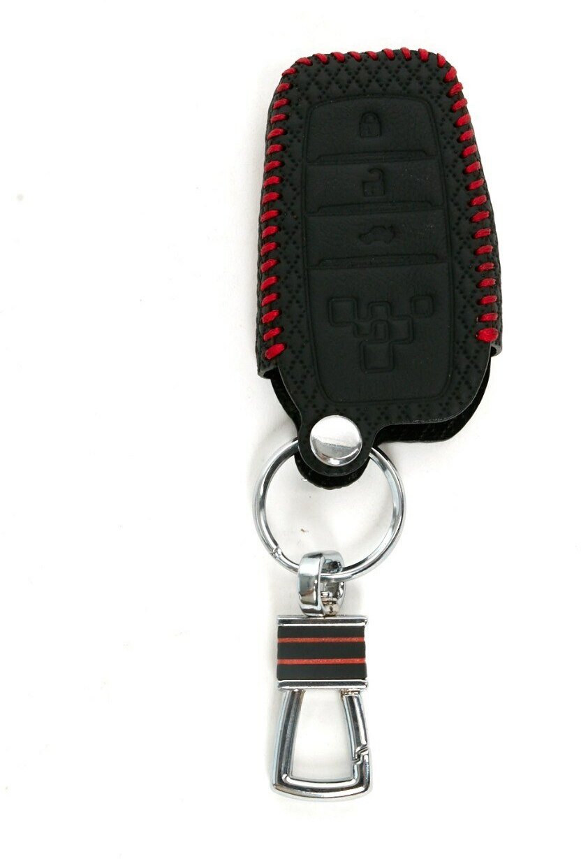 Отзывы на Кожаный чехол для ключа Тойота Камри, Ленд Крузер 200, Хайлюкс Черный нить красная
