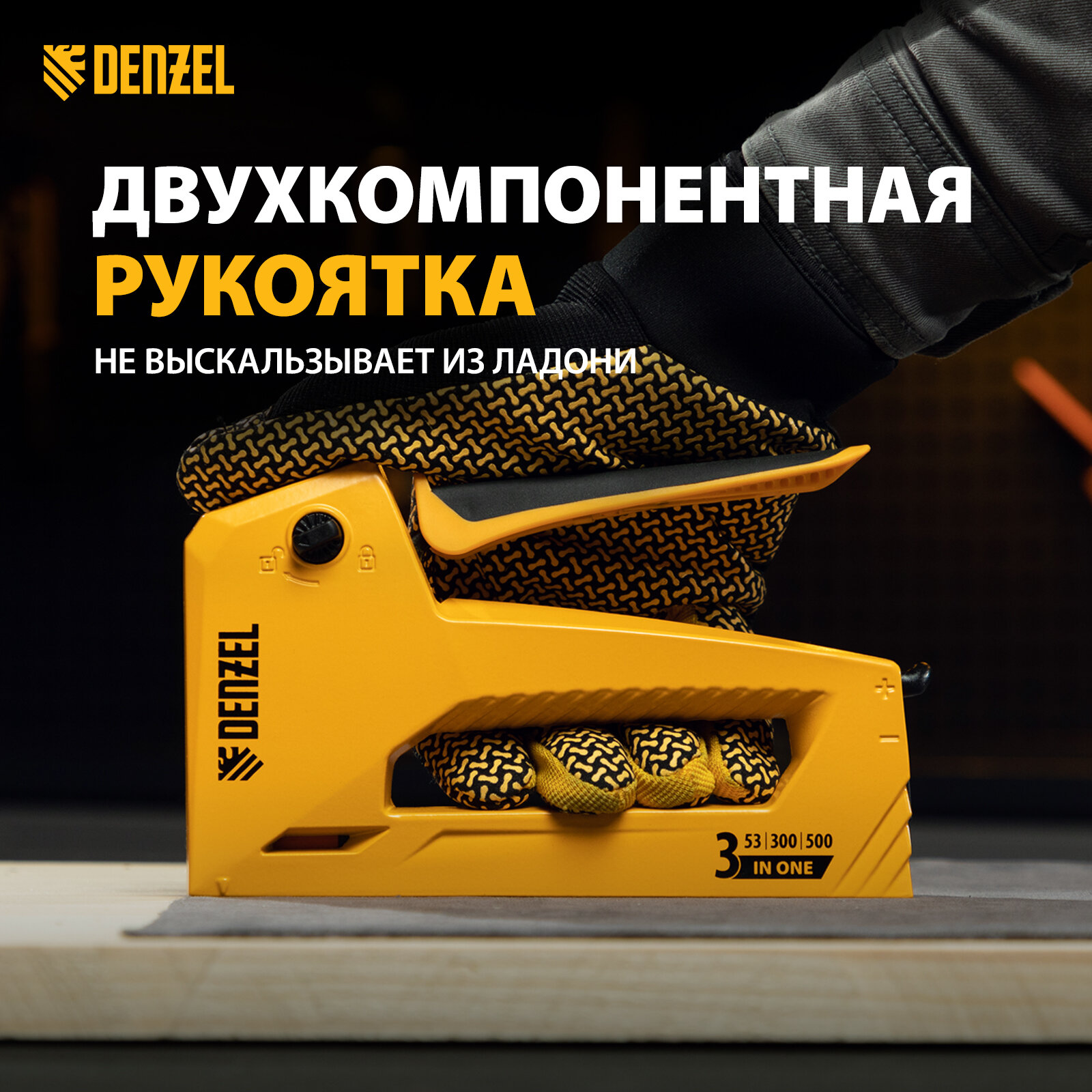 Степлер мебельный Denzel алюминиевый корпус, тип 53, 6-14 мм, тип 300, 15 мм, тип 500, 15 мм 40214 информация:
