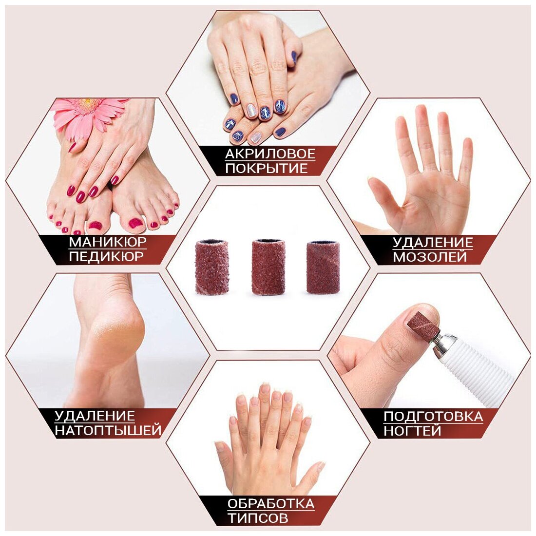10 цен на Насадки абразивные шлифовальные для аппаратного педикюра и маникюра, 120 Грит / 50шт. + Основа в подарок
