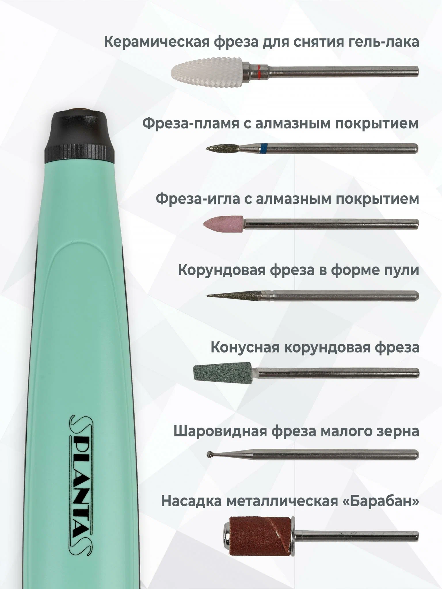 10 цен на PLANTA Беспроводной аппарат для аппаратного маникюра и педикюра PL-MAN20, машинка для снятия и коррекции гель лака, до 15 000 об/мин, в комплекте 7 насадок