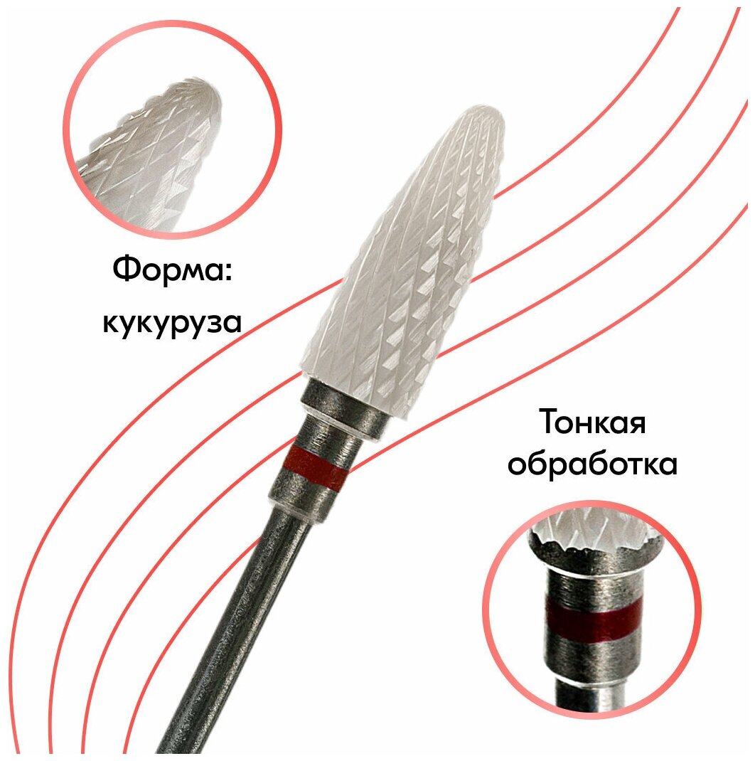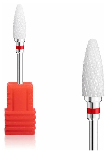 10 цен на NailsProfi, Фреза кукуруза, пламя керамическая для аппаратного маникюра и педикюра, красная, тонкая обработка