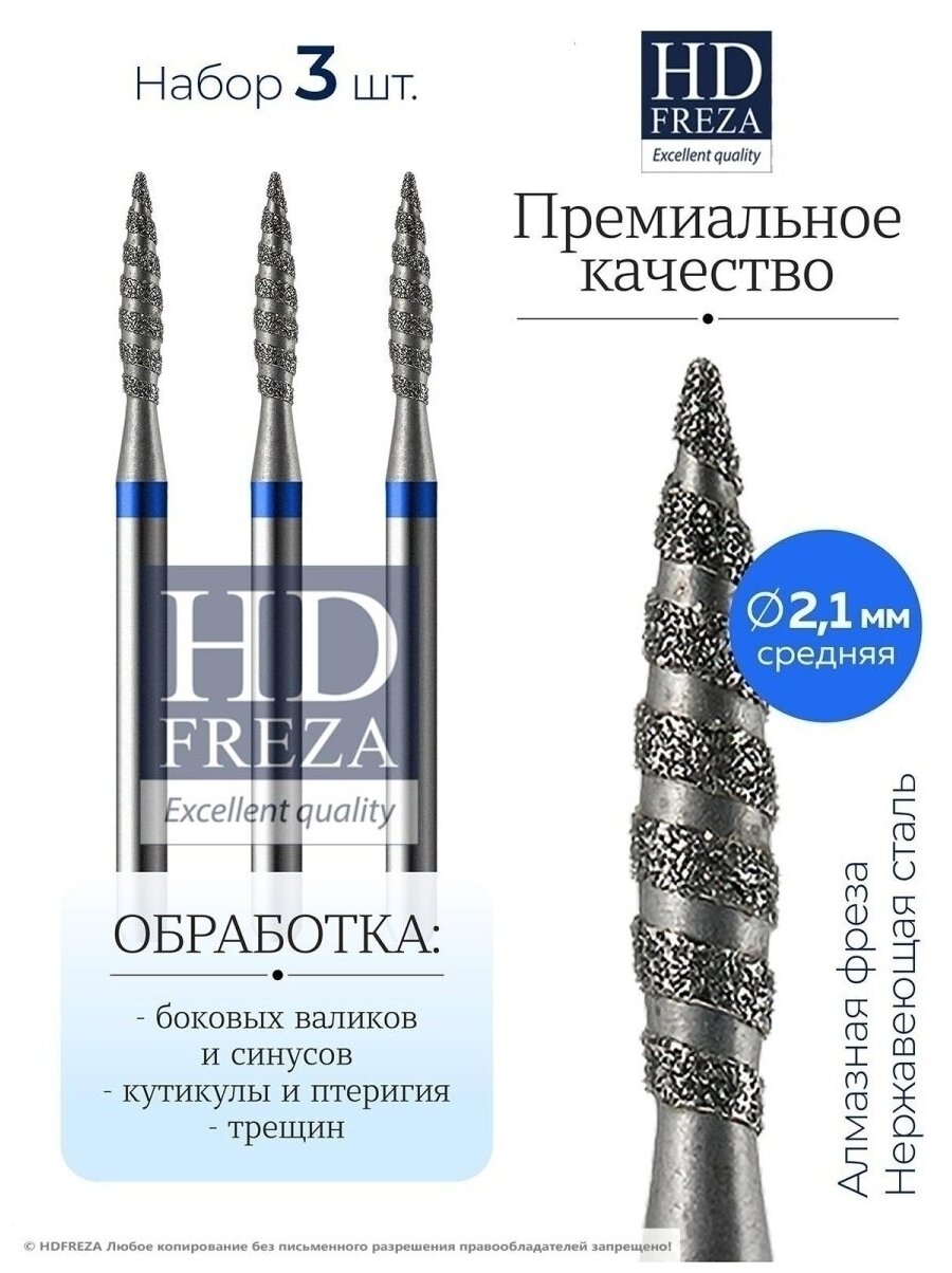 HDFREZA Фреза алмазная 804 243 524 021 Средняя синяя торнадо (упаковка 3 шт) d-2.1 информация: