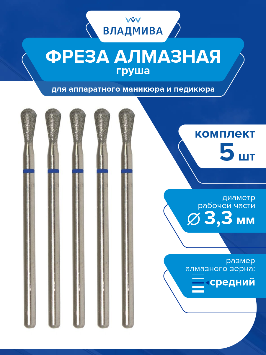 Фреза алмазная груша, средней зерн. 3,3 мм. Комплект 5 шт.(866.104.237.070.033) информация: