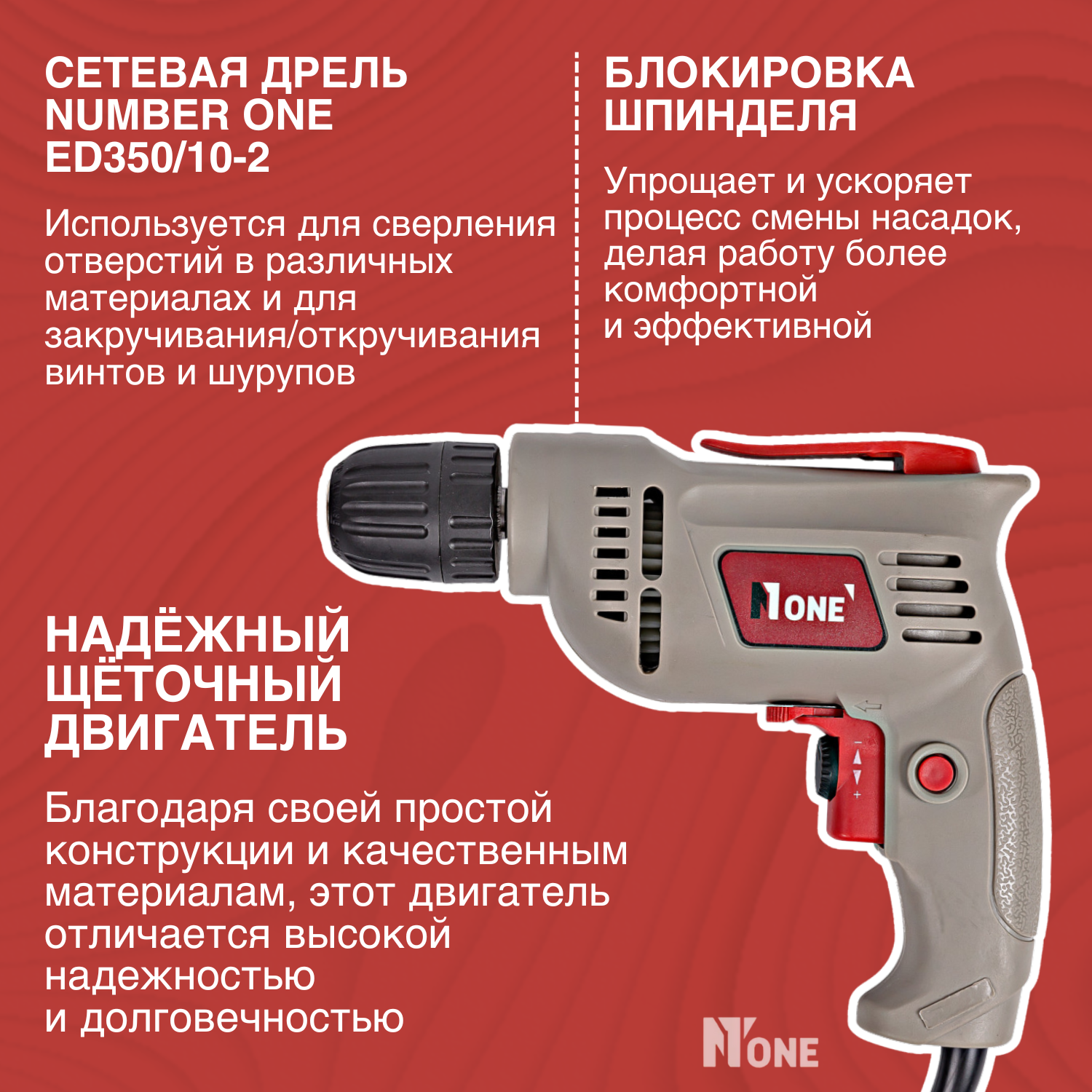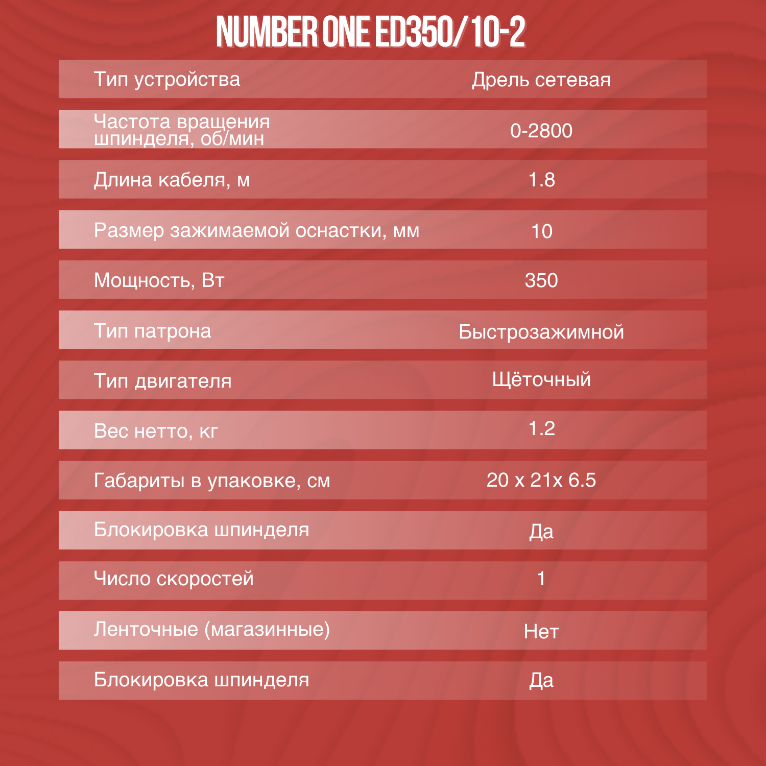 Дрель сетевая NUMBER ONE ED350/10-2, 350Вт, 2800 об/мин 10мм, реверс. информация: