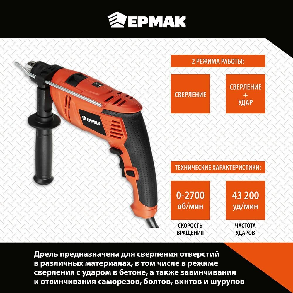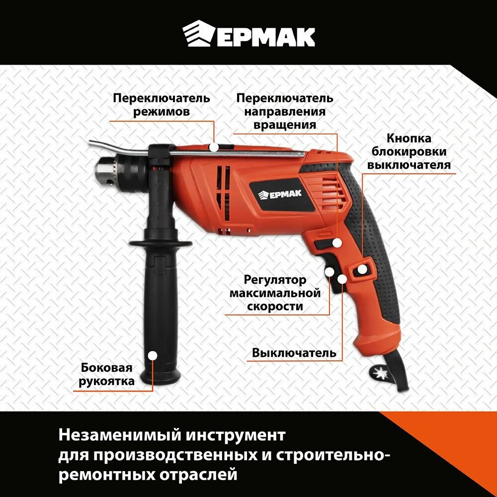 Ударная дрель Ермак ДУ-850, 850 Вт информация: