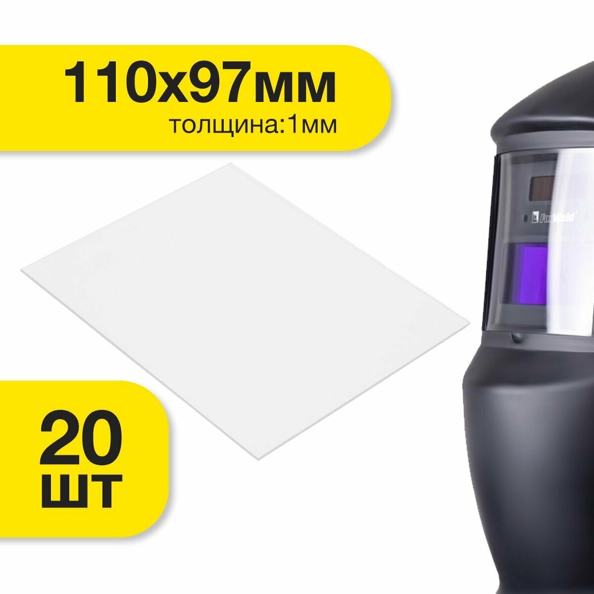 Защитное стекло 110x97 (20 шт) покровное, прозрачное для масок сварщика Titanix 5100 информация: