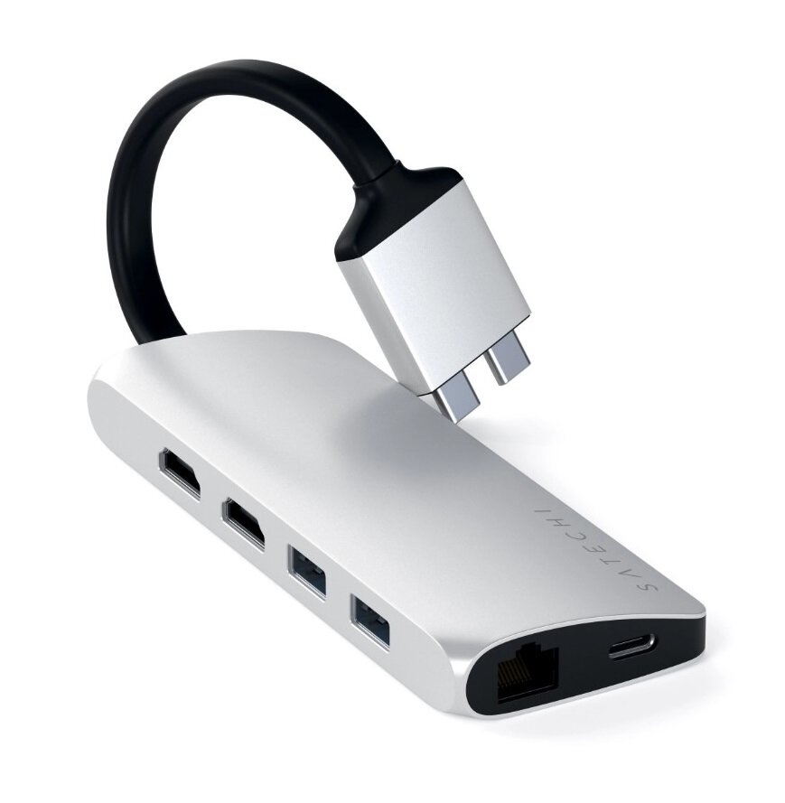 Док-станция Satechi Thunderbolt 3 Dual Multimedia Adapter для Macbook (2xUSB 3.0, USB Type-C, 2xHDMI, RJ-45, SD, micro-SD), Серебристый ST-TCDMMAS информация: