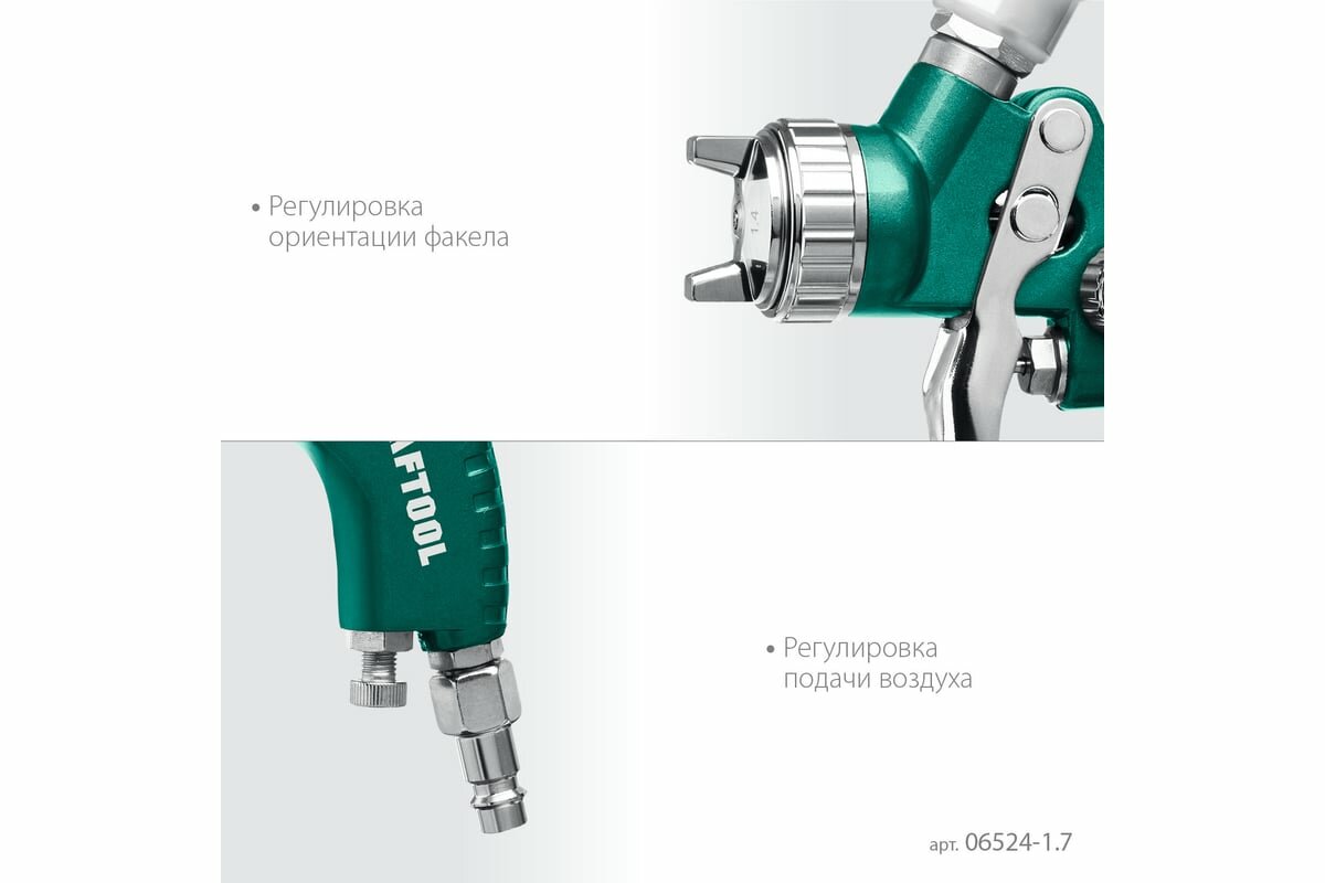 KRAFTOOL сопло 1,7 мм, краскопульт пневматический с верхним бачком AirFlat LVLP 06524-1.7