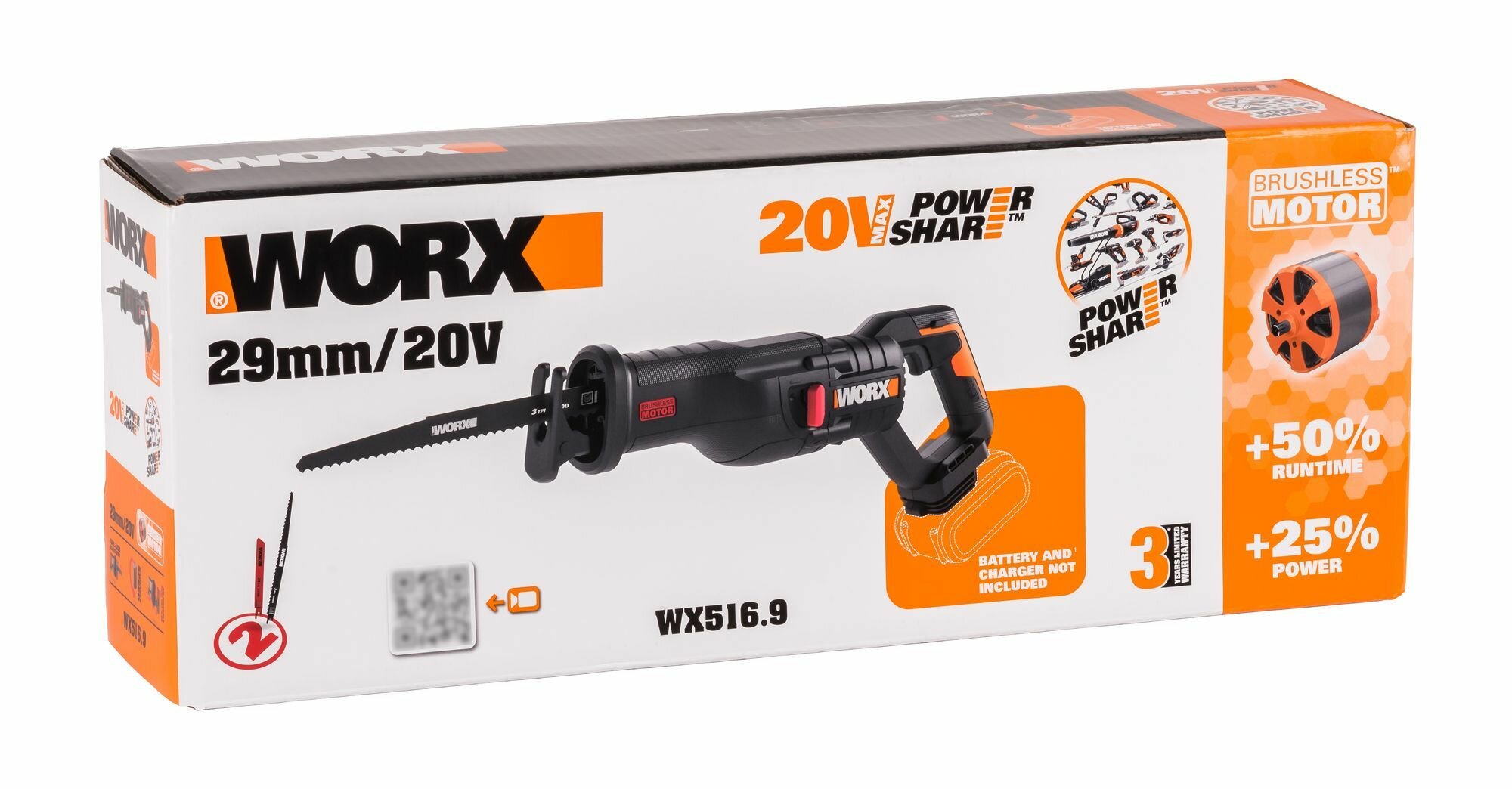 Сабельная пила WORX WX516.9 20V бесщеточная аккумуляторная без батареи и зарядки информация: