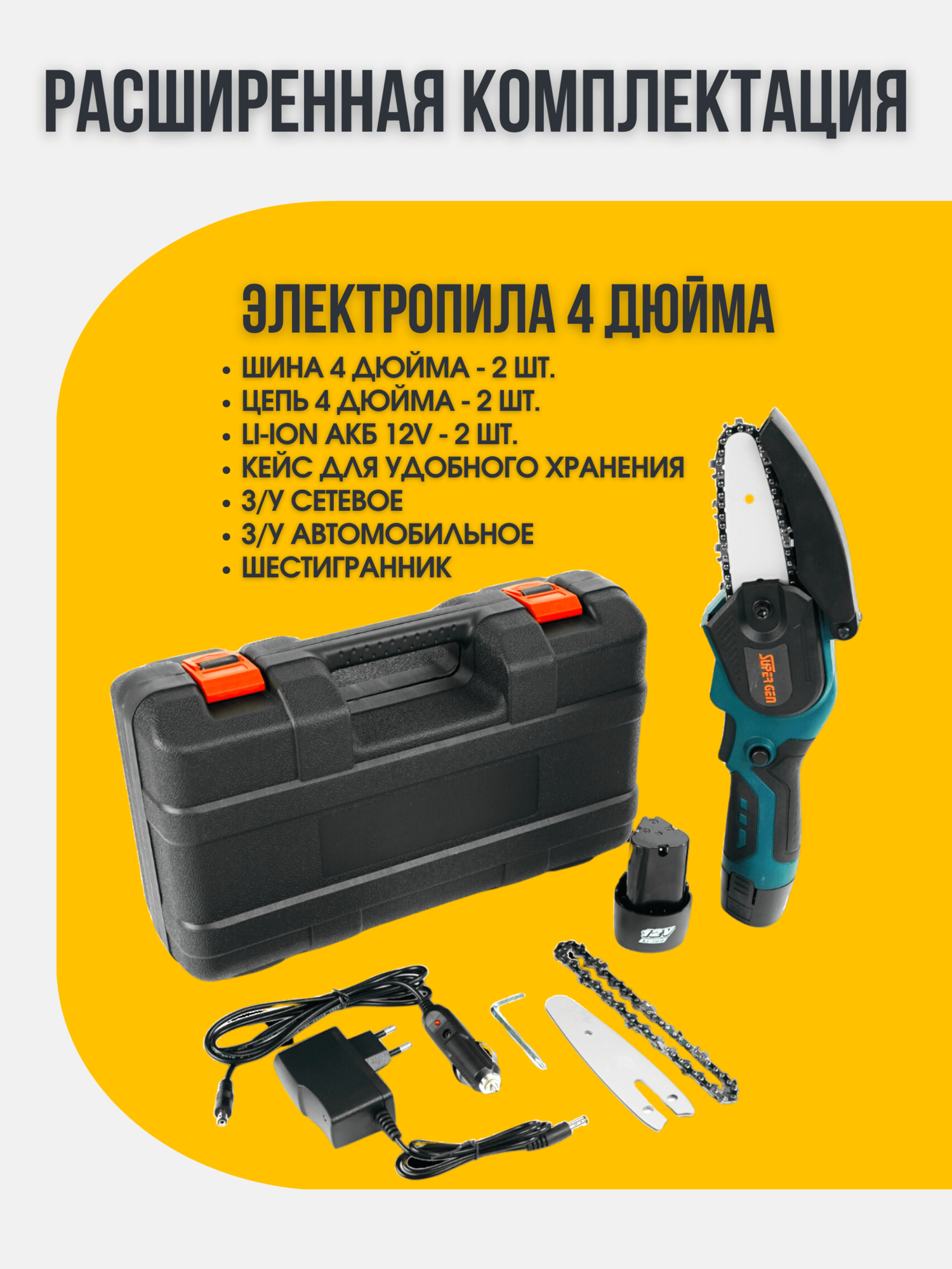 10 цен на Электропила цепная аккумуляторная SUPERGEN 4 дюйма 12В