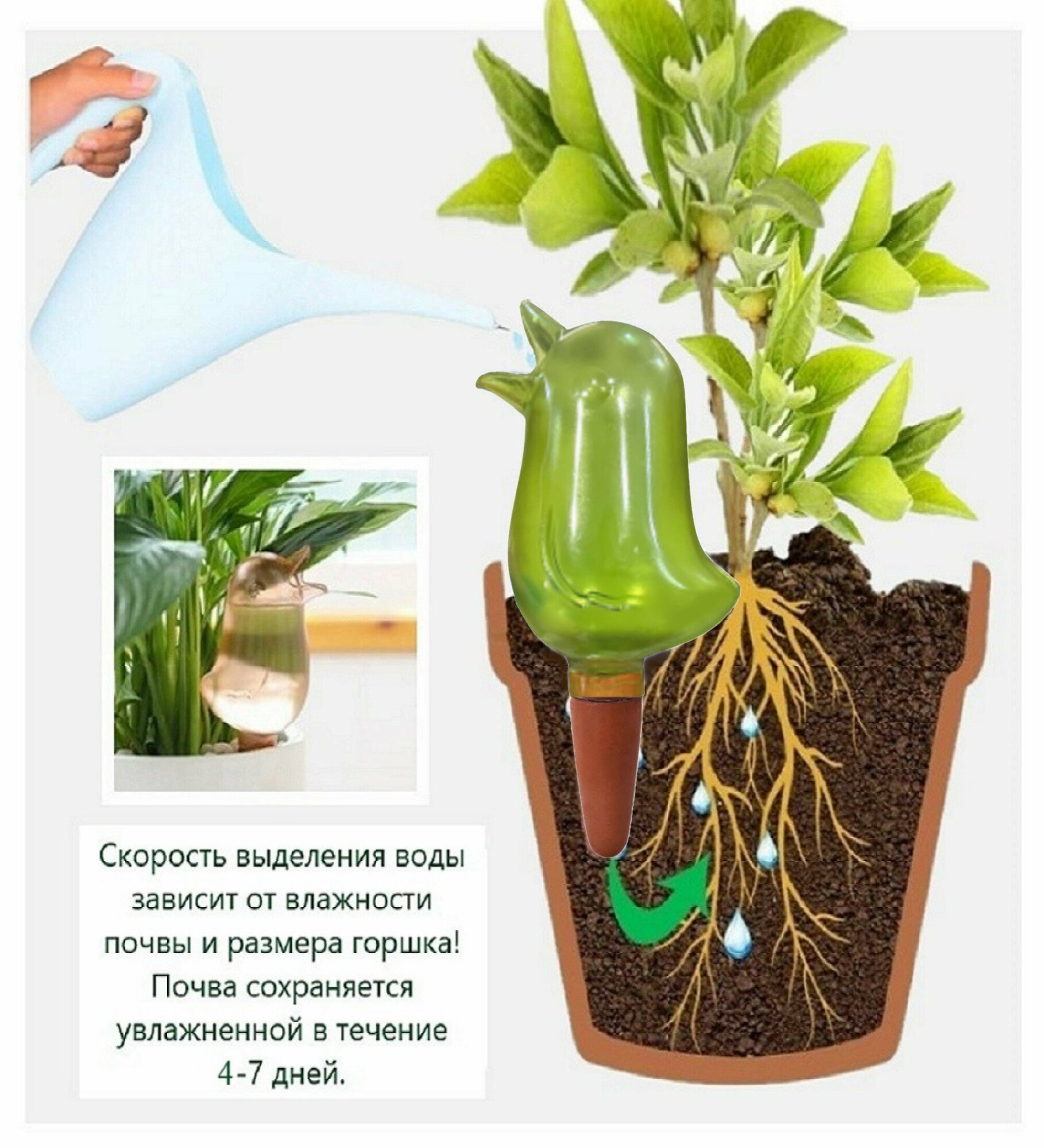 Автополив комнатных растений, цветов, капельный полив, лейка комнатная информация: