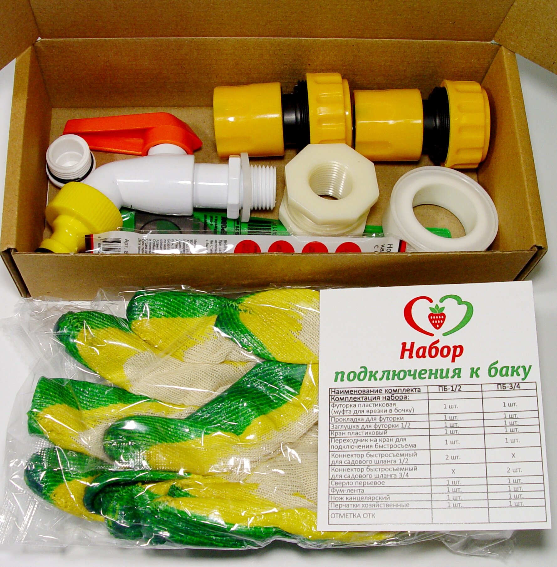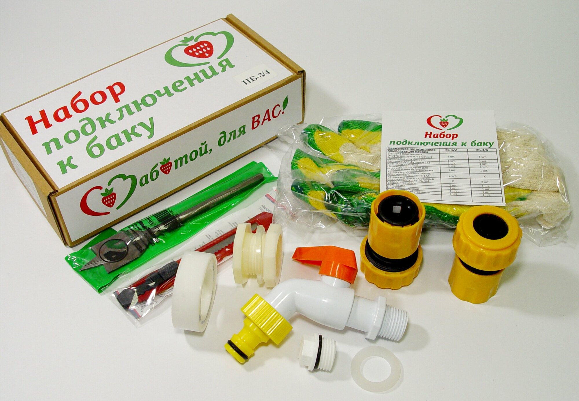 Набор для подключения к бочке (баку) ПБ-3/4, врезка в бочку, в комплекте усиленные элементы, инструмент для врезки информация: