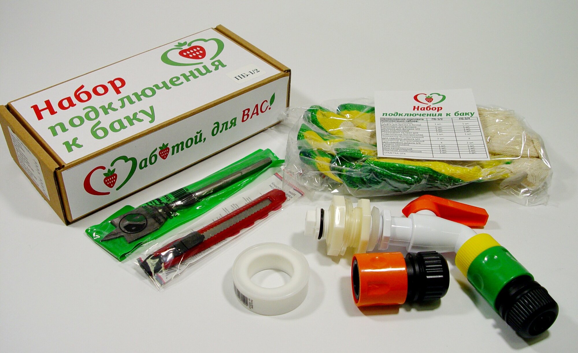 Набор для подключения к бочке (баку) ПБ-1/2, врезка в бочку, в комплекте усиленные элементы, инструмент для врезки информация:
