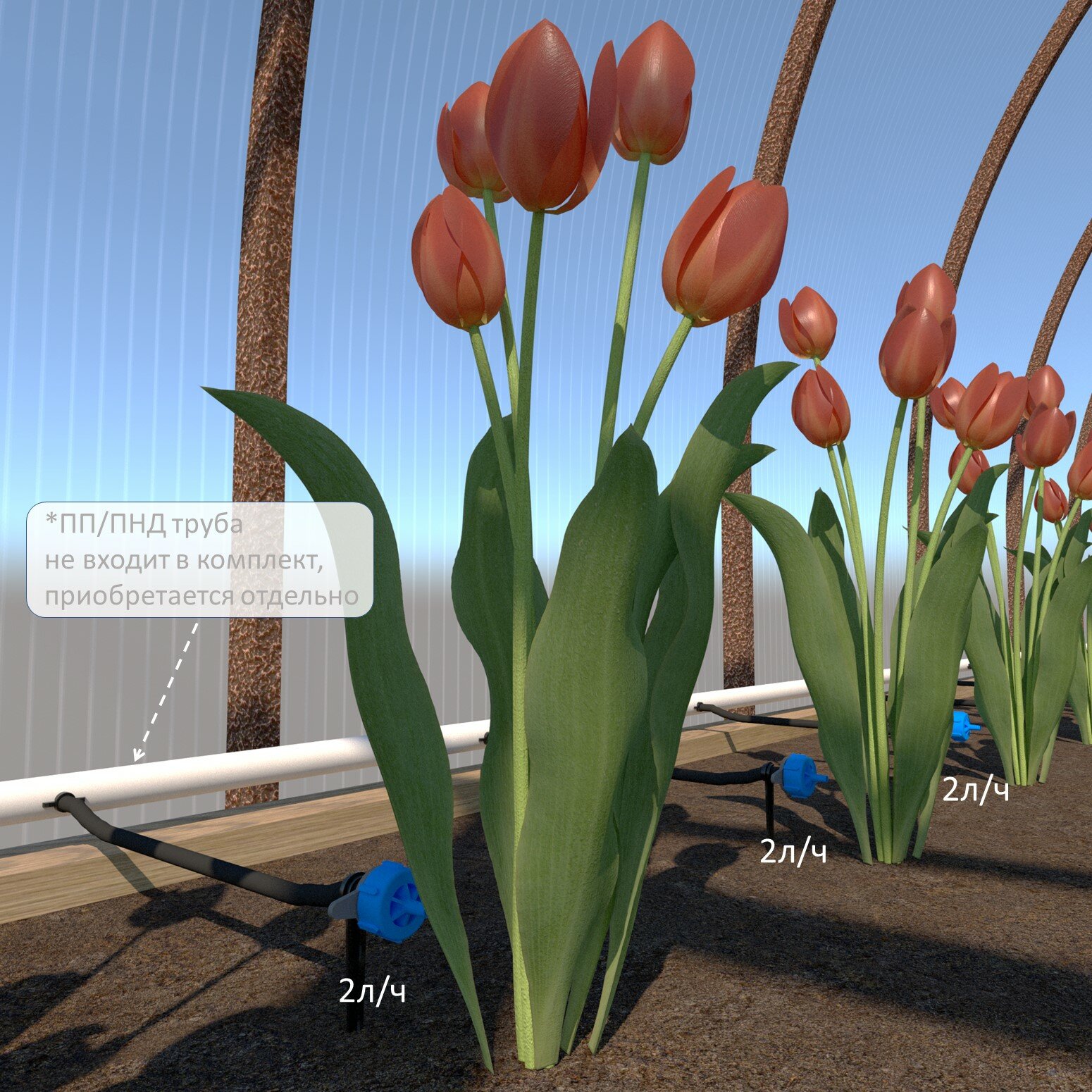 10 цен на Набор капельного полива на 60 растений. Для монтажа в полипропиленовую или ПНД трубу. Для теплицы, грядок, сада, питомников.