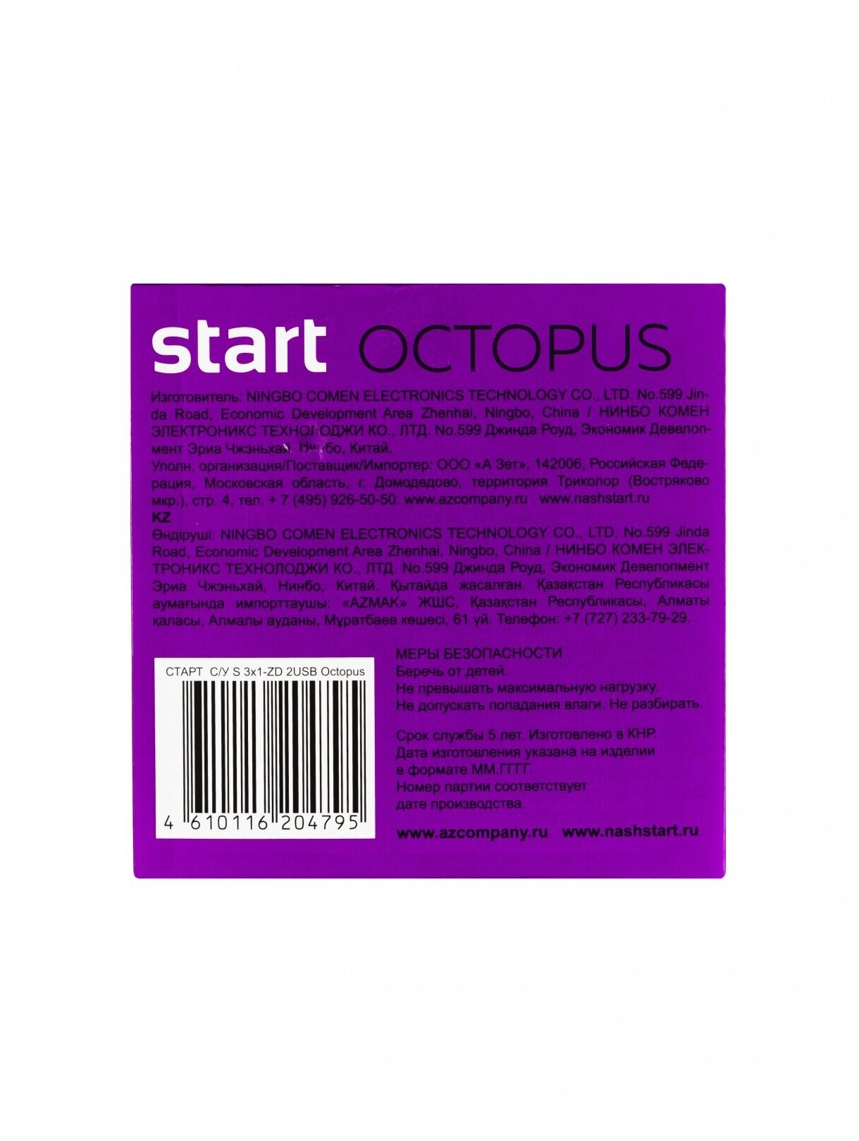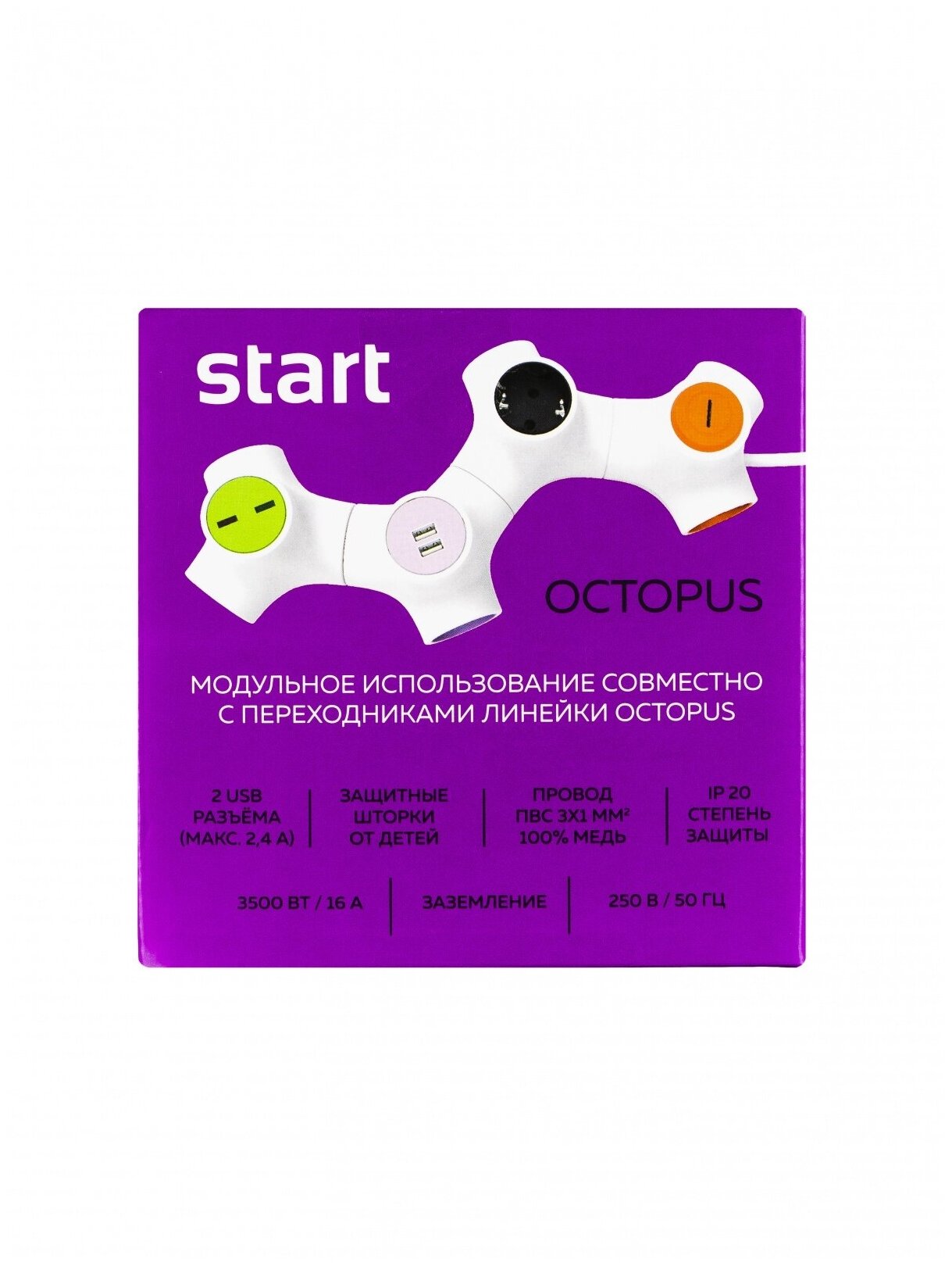 Удлинитель старт S 3x1-ZD 2USB Octopus (3 розетки, 1.4м, 16А, с заземлением) информация: