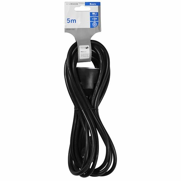 Удлинитель Vivanco (1 розетка, 5 м, чёрный), 37325 информация: