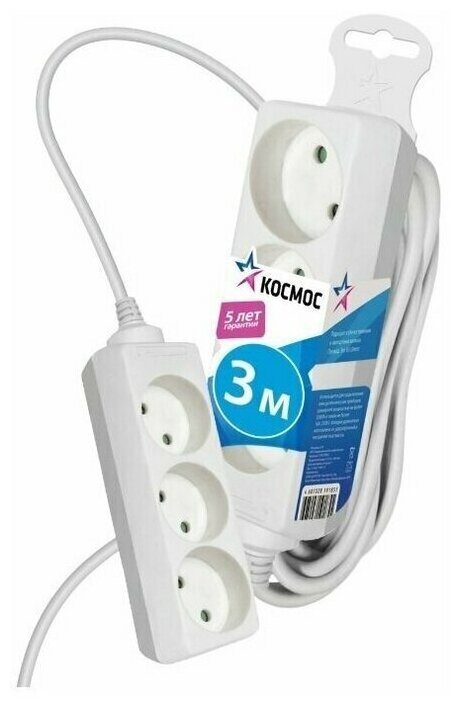 Сетевой удлинитель Космос YKSM3M-3G(K), 3 розетки, 3 м, белый 640 ₽