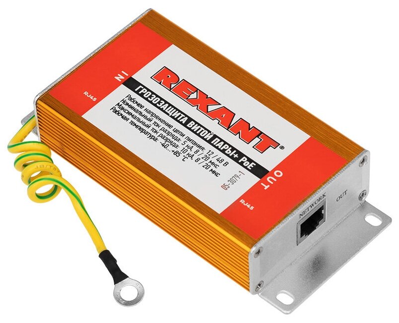 Грозозащита витой пары Rexant разъем RJ45 с PoE, 05-3079-1