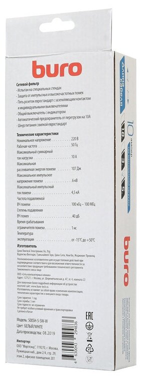 10 цен на Сетевой фильтр Buro 500SH-5-SW-W, 5 м, 5 розеток, белый