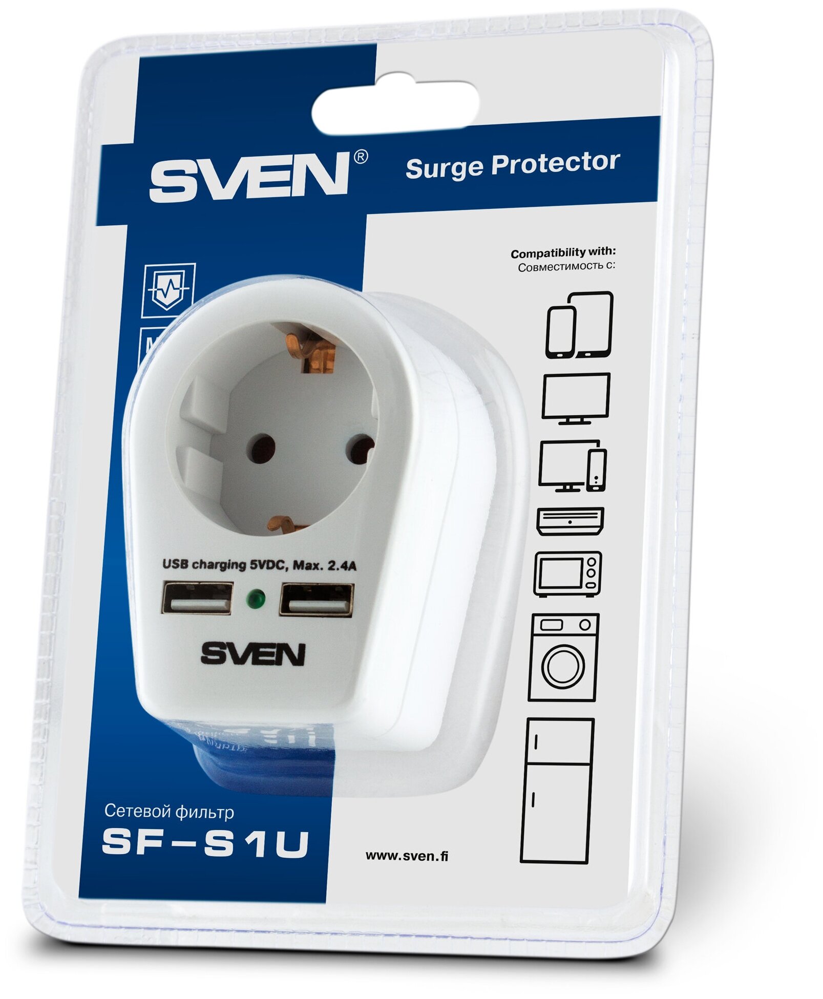 Фильтр SVEN SF-S1U (1 евро розетка, 2 USB) белый, блистер