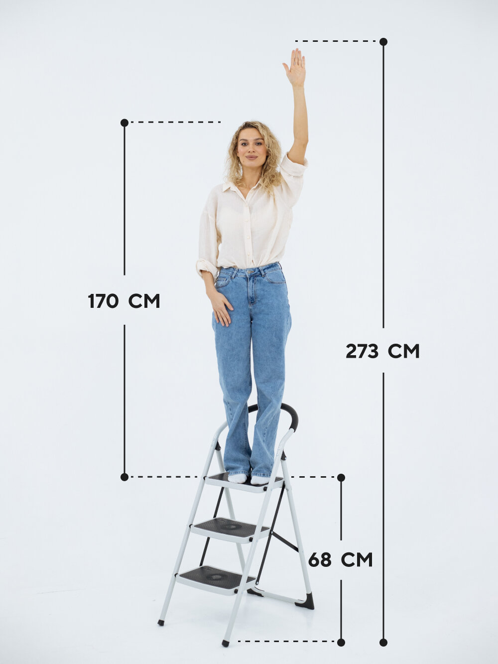 Стремянка 3-х ступенчатая усиленная. С широкими антискользящими ступенями. Макс нагрузка 150 кг. информация: