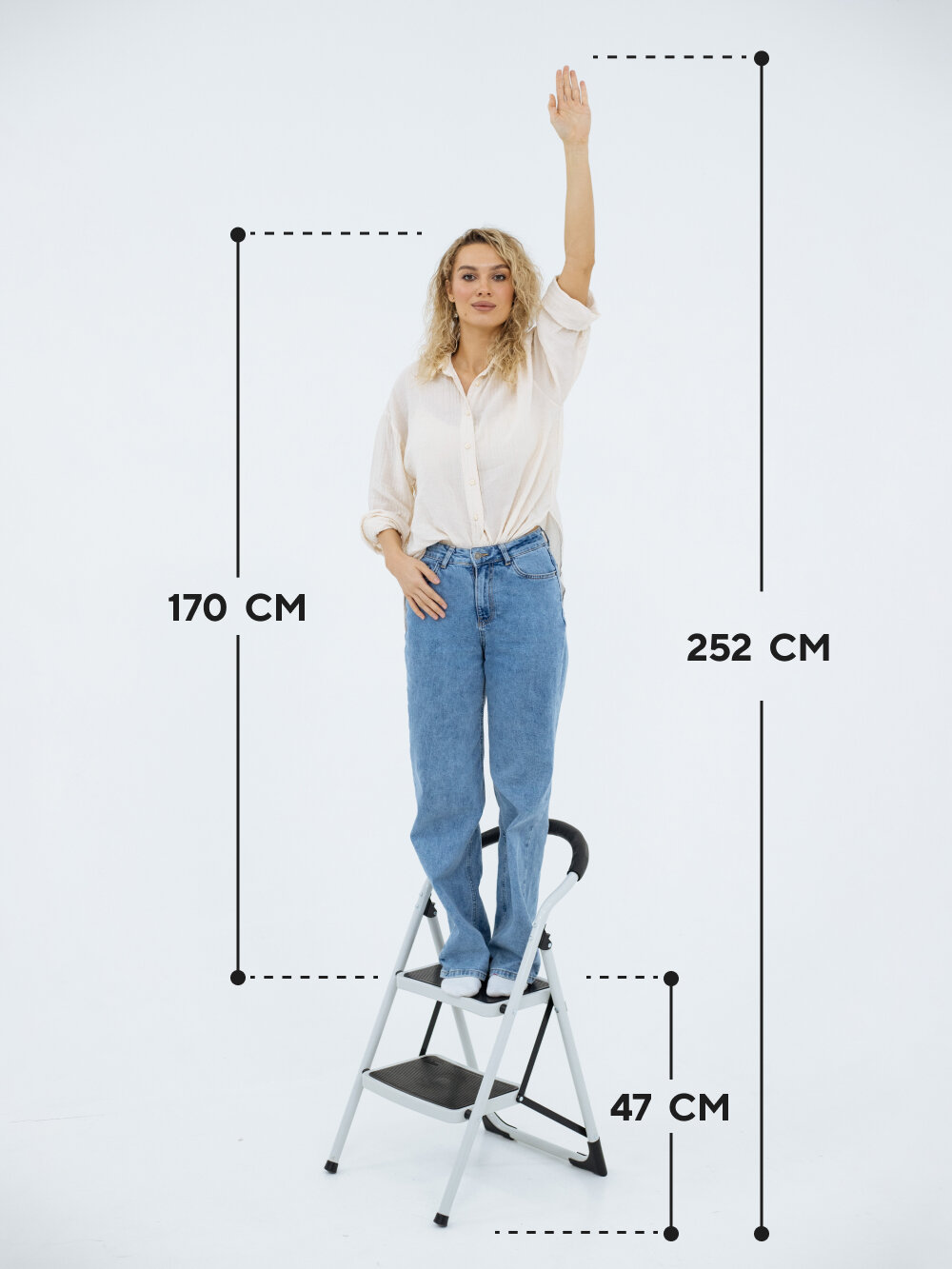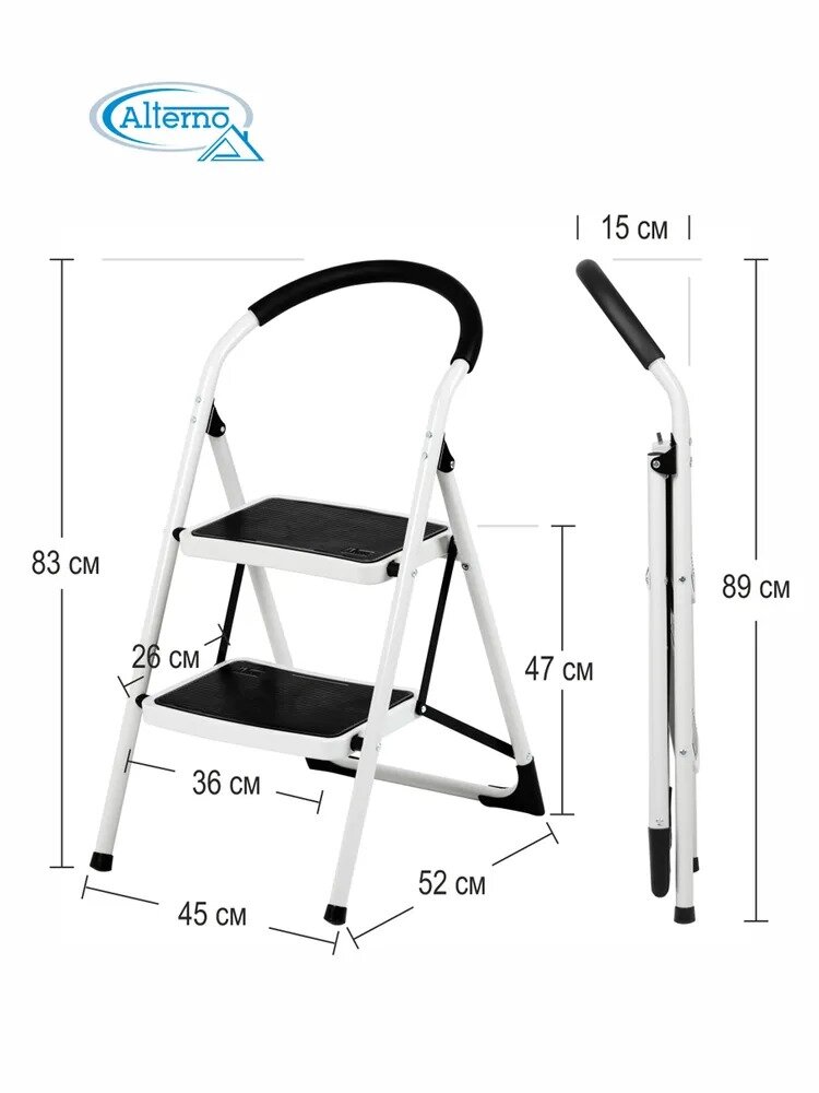 Стремянка 2-х ступенчатая усиленная. С широкими антискользящими ступенями. Макс нагрузка 150 кг. информация: