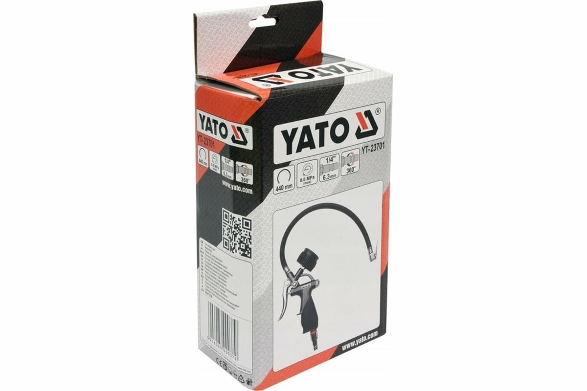 Пистолет Yato, для накачивания колес, с манометром, 0,6 MPa, 440 мм, YT-23701