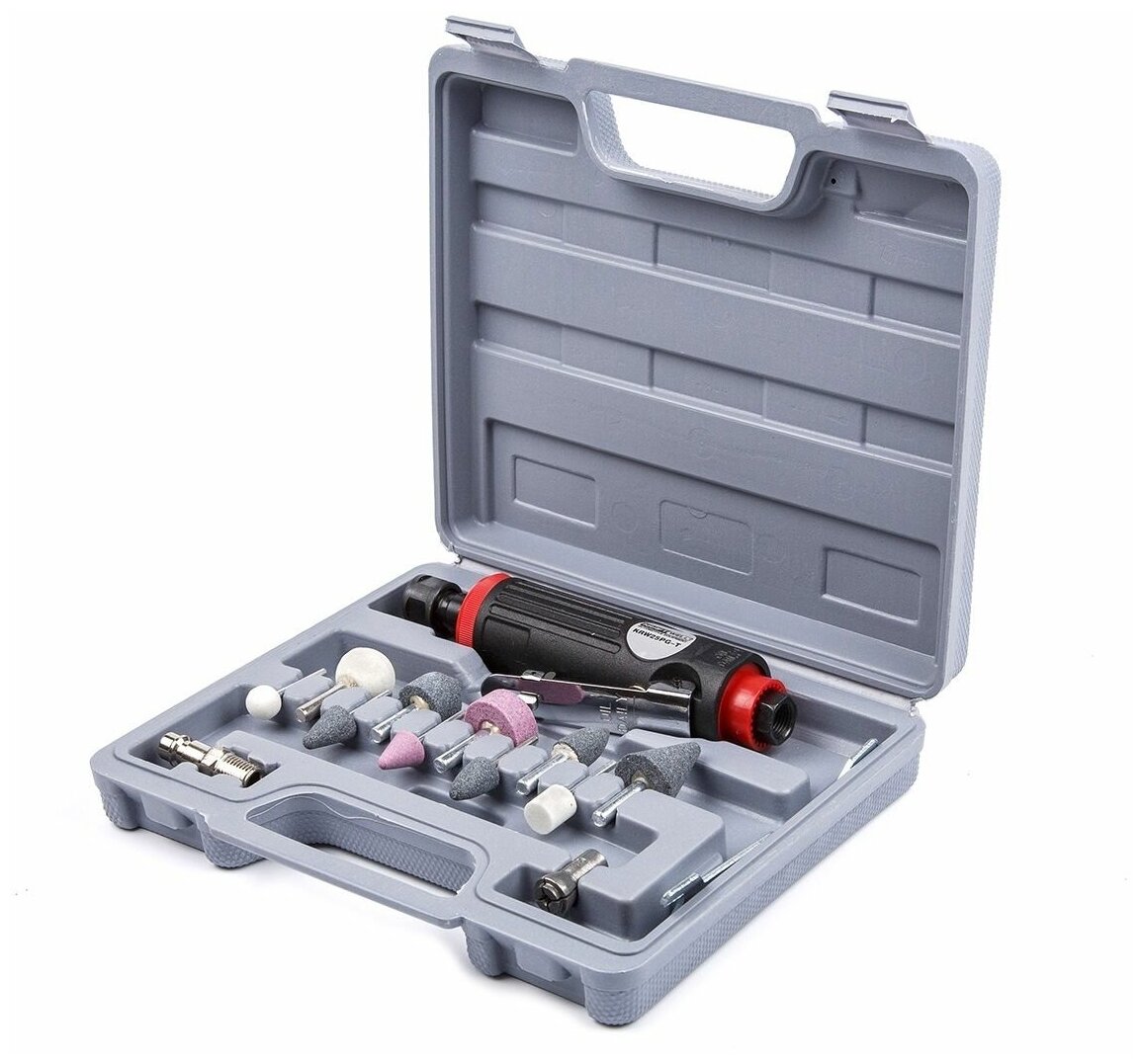 Пневматическая бормашинка KraftWell с набором насадок, в кейсе KRW25PG-T информация: