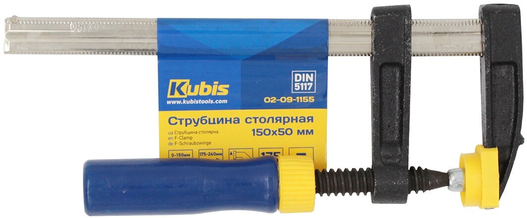 Струбцина столярная F-образная Kubis 150 * 50 мм, 330 кг, DIN5117 1 шт информация: