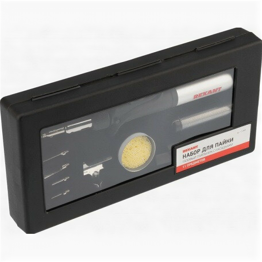 Газовый паяльник KRAFTOOL в кейсе, набор 10-в-1, 30-120 Вт, горелка, фен, пьезоподжиг, 1300 С