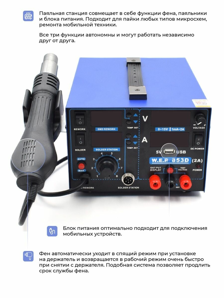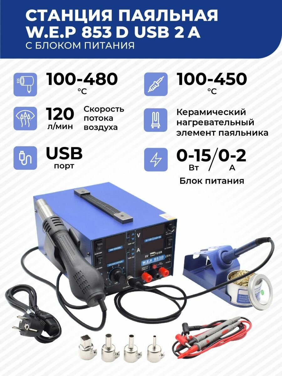 Станция паяльная W.E.P 853D USB 2A с блоком питания информация: