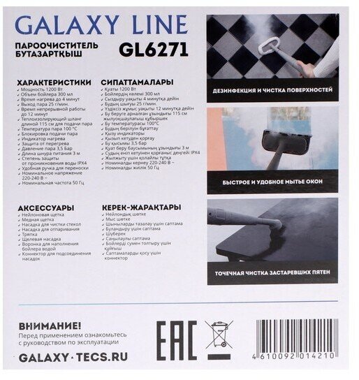 Пароочиститель LINE GL6271, 1200 Вт, 0.3 л, 25 г/мин, нагрев 4 минуты, зеленый информация: