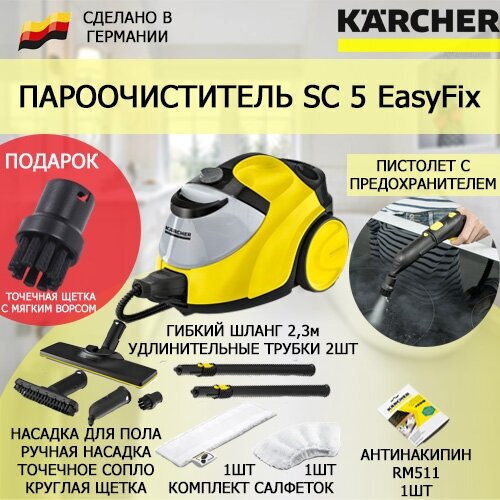 Пароочиститель KARCHER SC 3 Delux EasyFix + аксессуары VELER: 2 салфетки для пола, 2 для ручной насадки, 1 латунная щёточка, насадка для окон