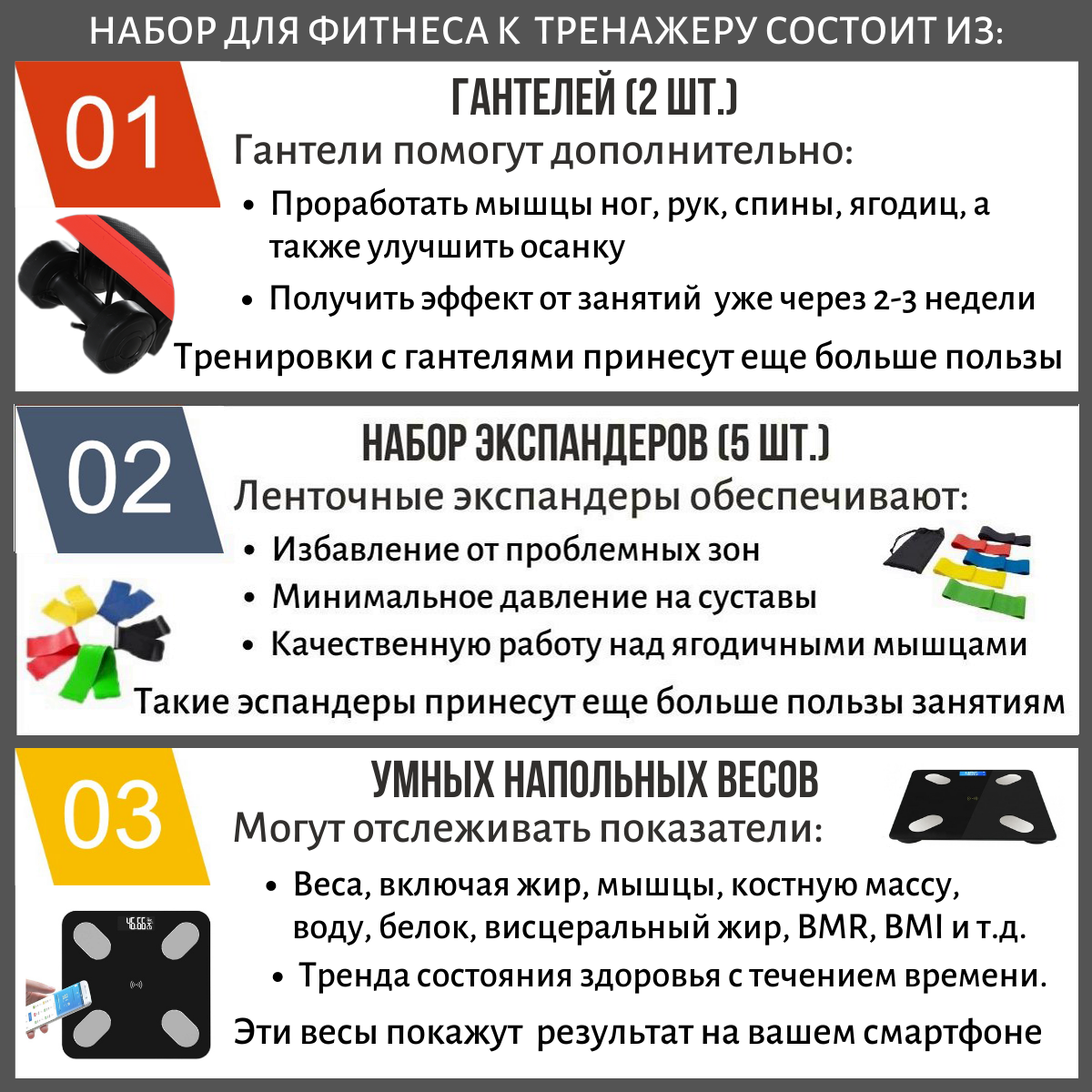| Упражнения | верхняя тяга / нижняя тяга / отведение ног / подтягивания / разведение рук / разгибание спины / сведение рук / сгибание спины |