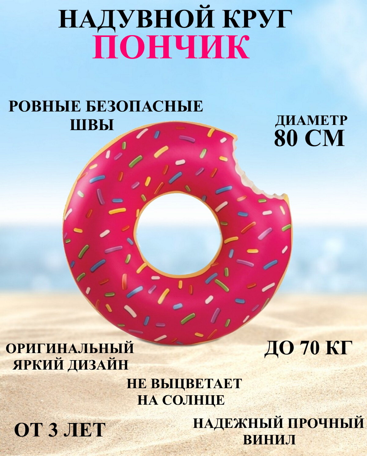 Отзывы на Надувной круг для плавания пончик 80 см, круг для купания пончик 80 см, круг пончик для моря, надувной круг 80, надувной круг для бассейна