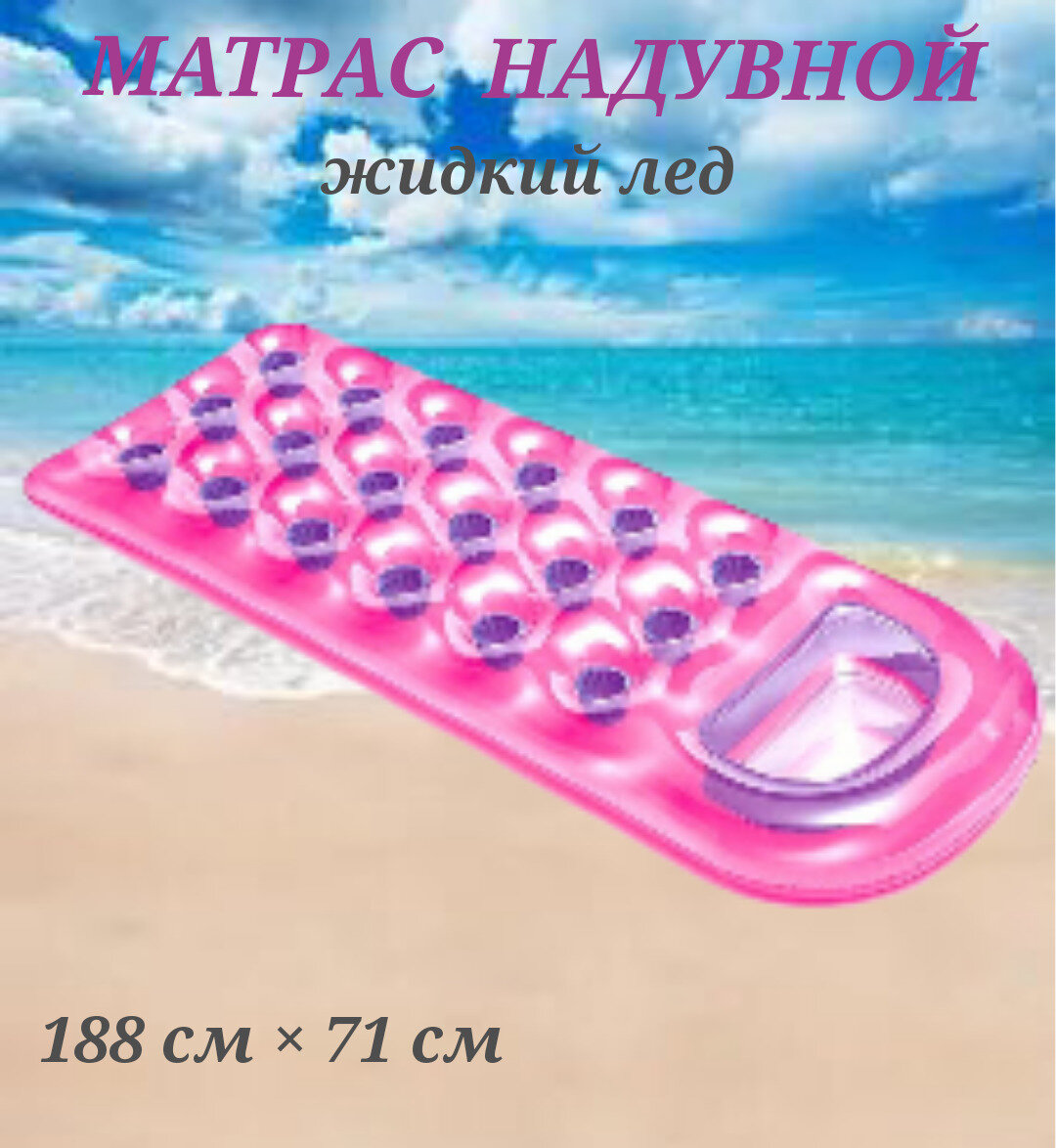 Матрас жидкий лед розовый 188 см, матрас надувной 188 см х 71 см, матрас для плавания, матрас надувной розовый, удобный матрас для плавания информация: