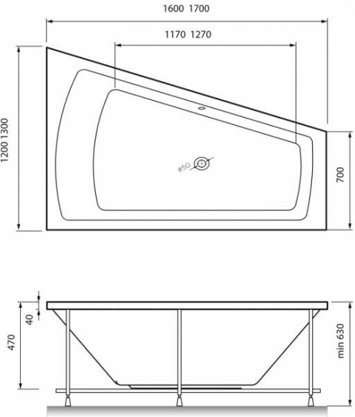 Ванна Gamma 140х70 см, акриловая, на каркасе, экран к ванне Gamma 140