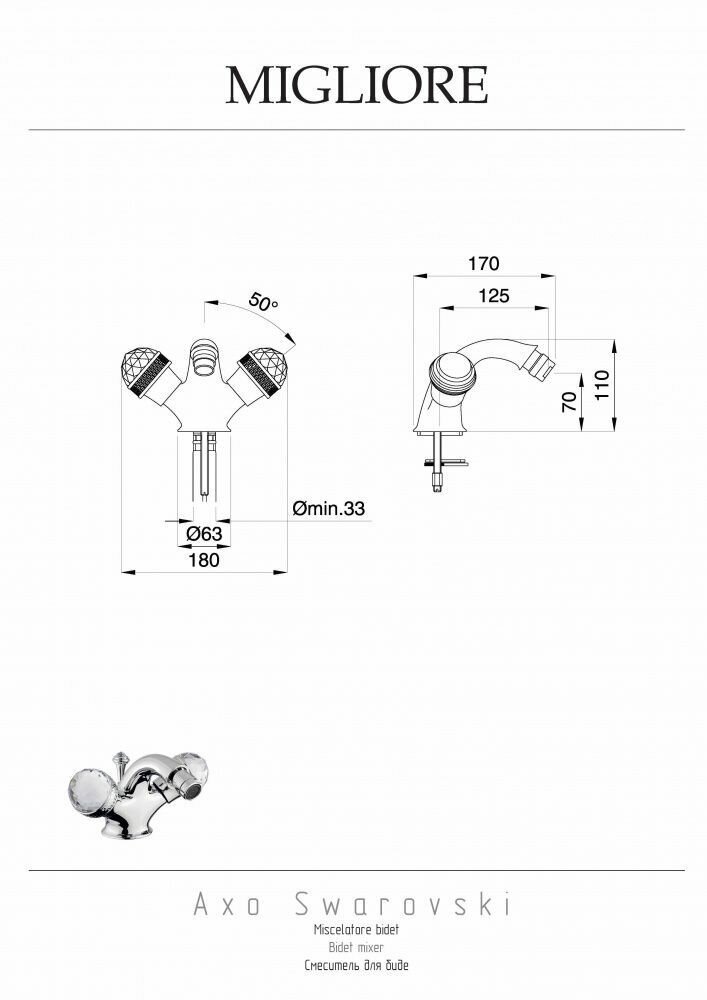 Смеситель для биде Migliore Axo Swarovski 18474 (ML.AXO-644F.BR) информация: