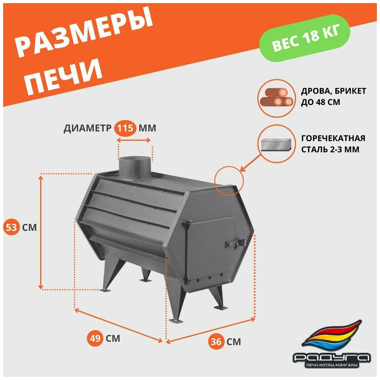 Печь отопительная дровяная буржуйка для дома и дачи, Радуга ПО-1, 1 квт информация: