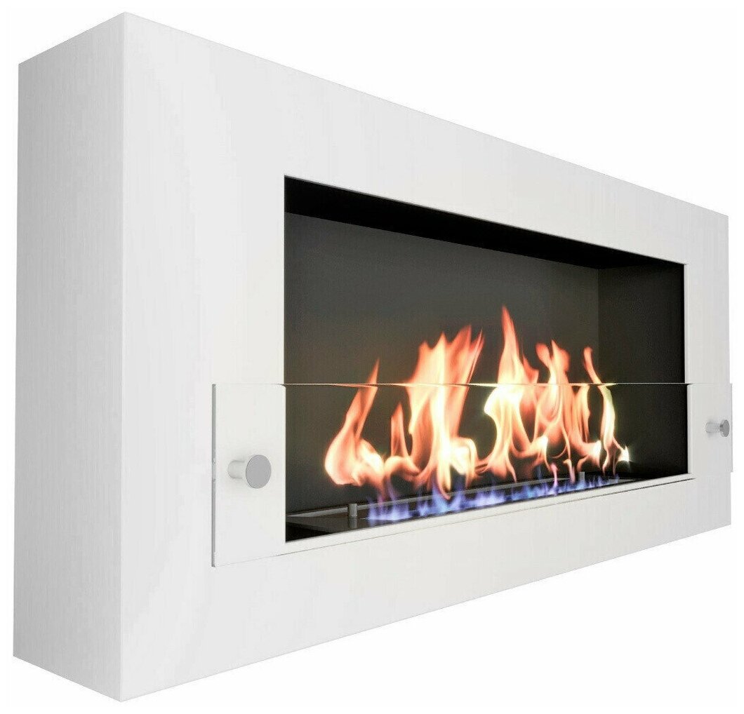 ZeFire Биокамин настенный Orion 900 с белой рамкой и стеклом для дома и квартиры