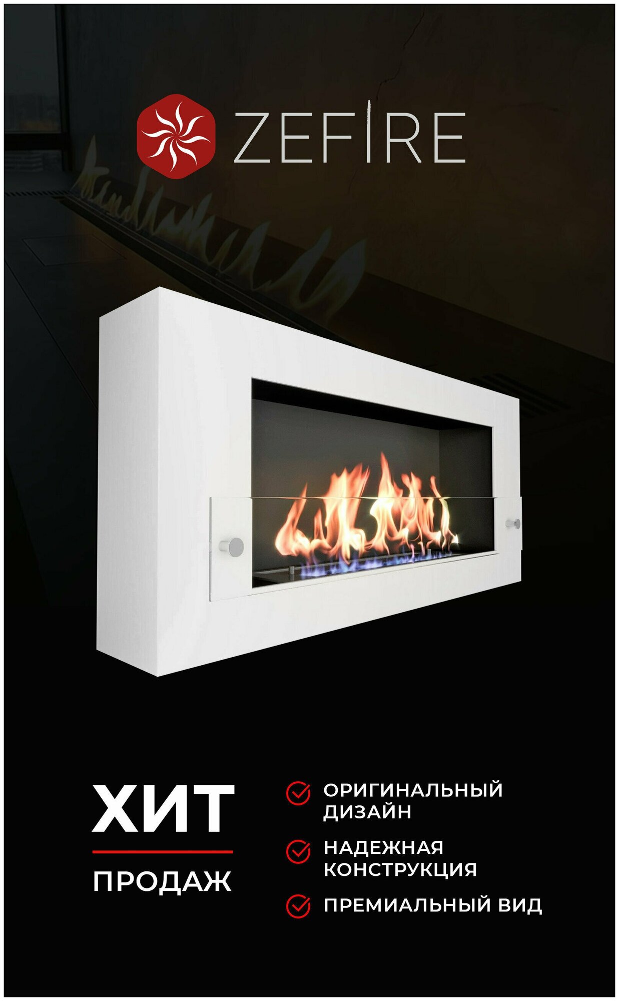 Биокамин настенный ZeFire Orion 900 с белой рамкой и стеклом для дома и квартиры информация: