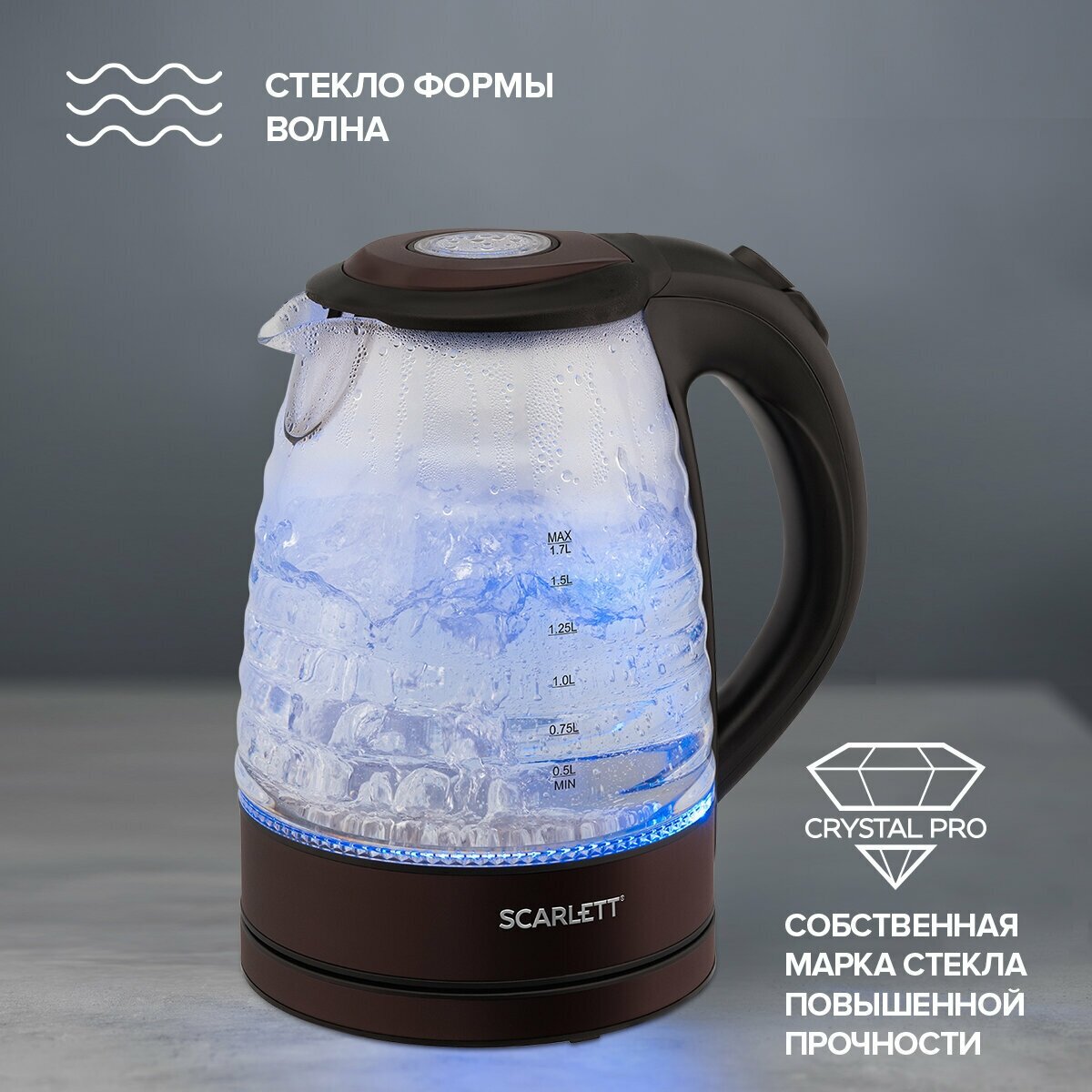 Чайник SCARLETT SC-EK27G97, 1,7 л, 2200 Вт, закрытый нагревательный элемент, стекло, коричневый