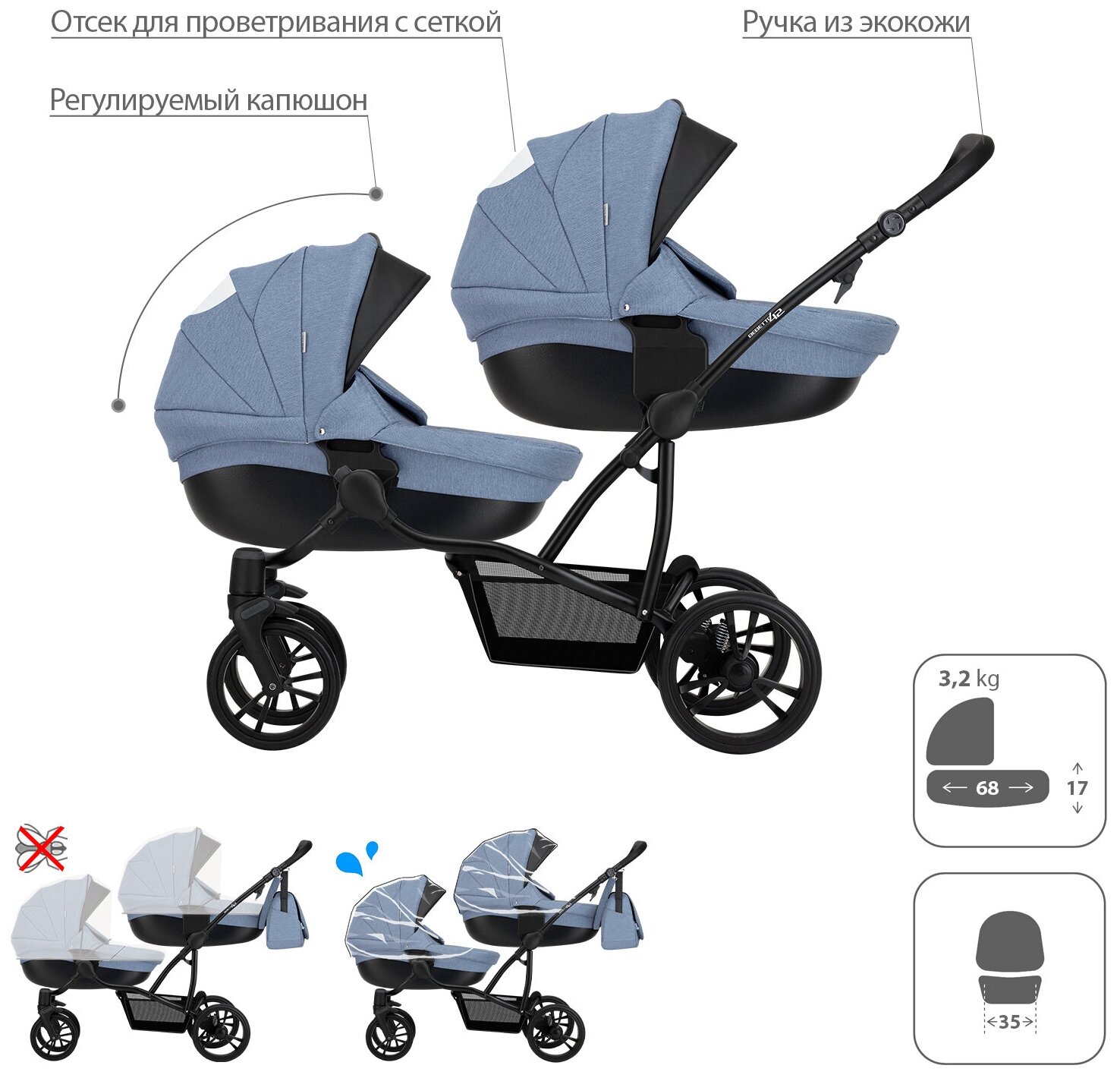 Коляска для двойни Bebetto42 Comfort (2 в 1) 03_BIA
