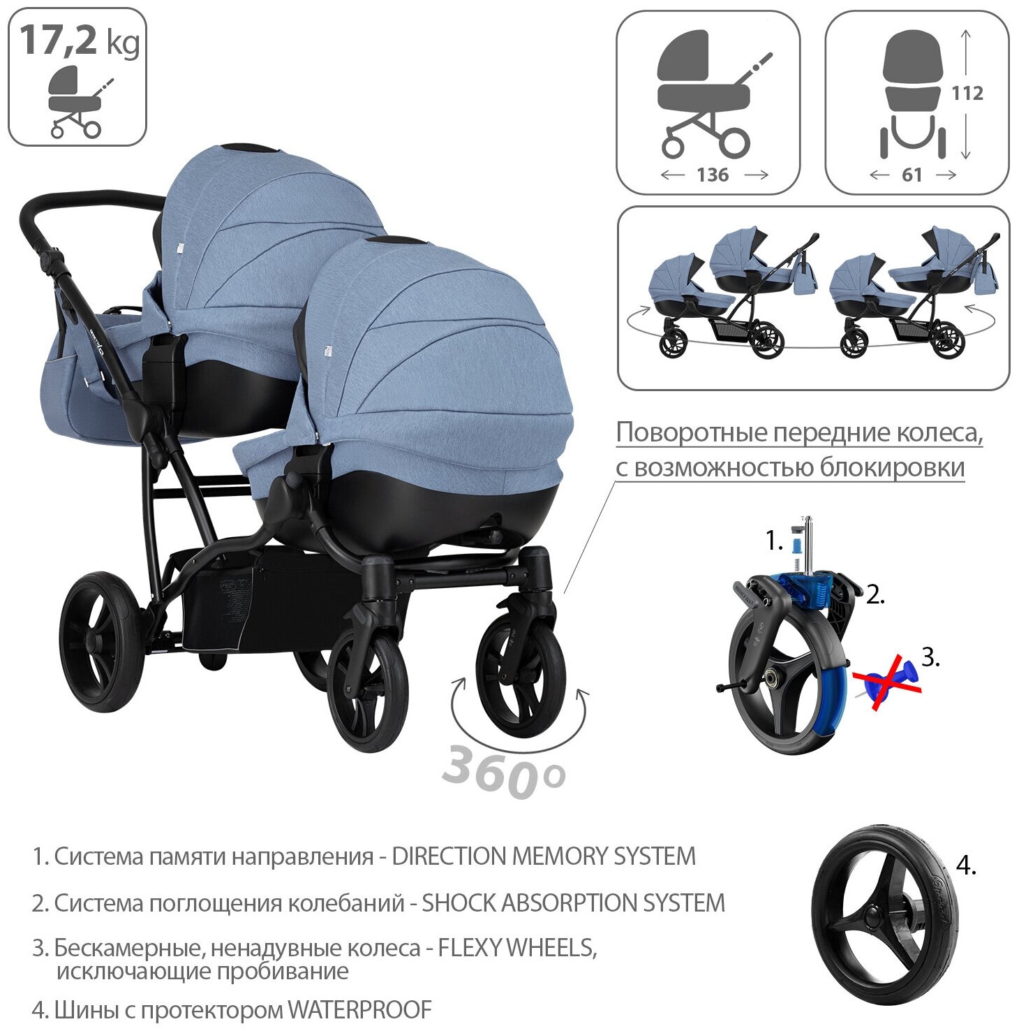 | Количество блоков | два (коляска для двойни) |