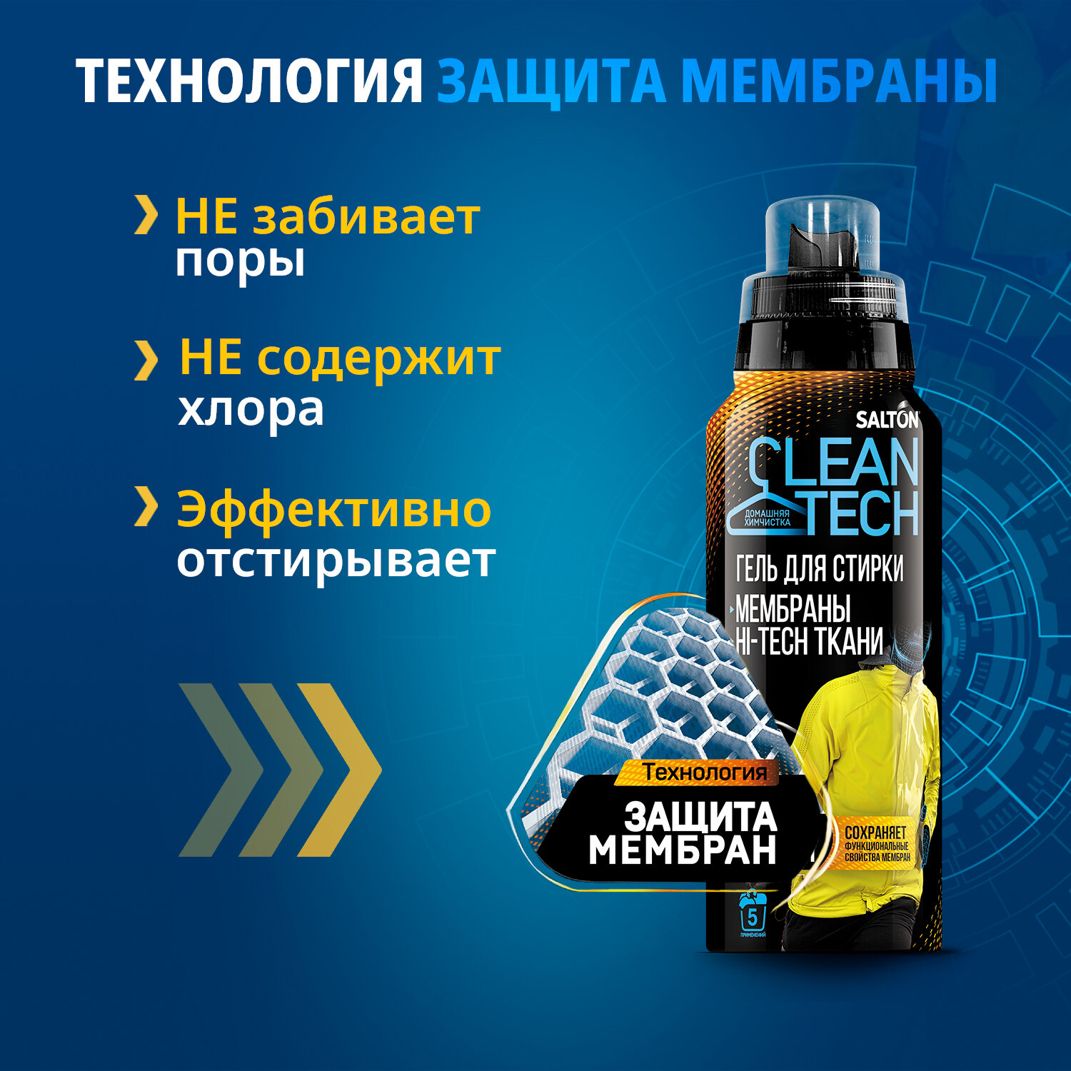 Гель Salton CleanTech для стирки изделий из мембран и технологичных тканей, 500 мл